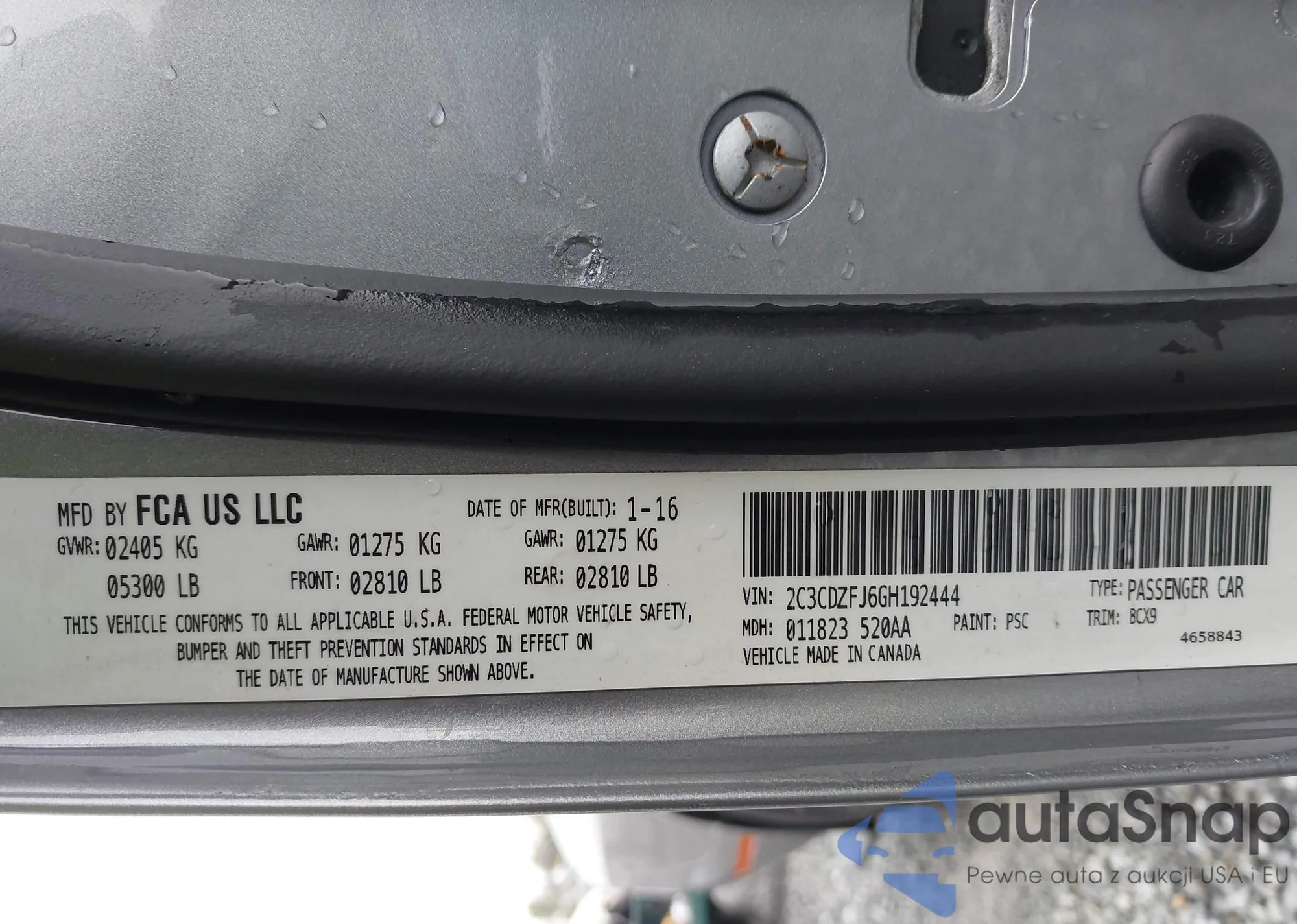 LOT: 43547691 VIN: 2C3CDZFJ6GH192444