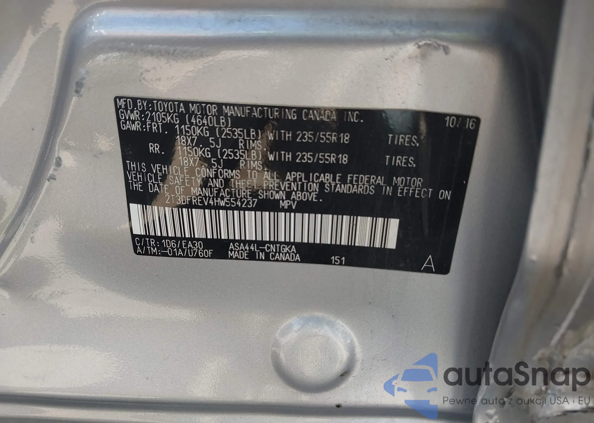 • VIN 2T3DFREV4HW554237