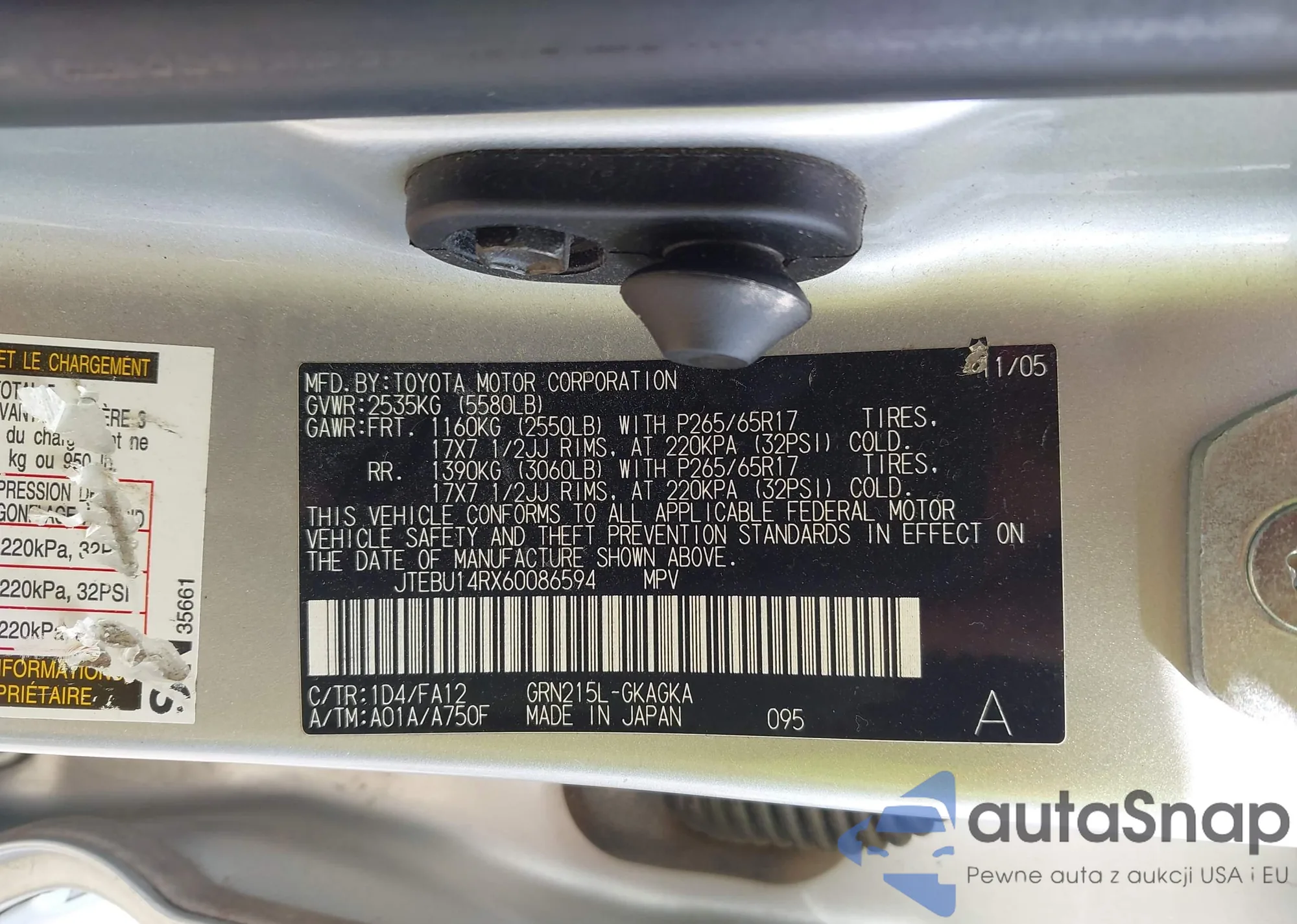 LOT: 43390397 VIN: JTEBU14RX60086594