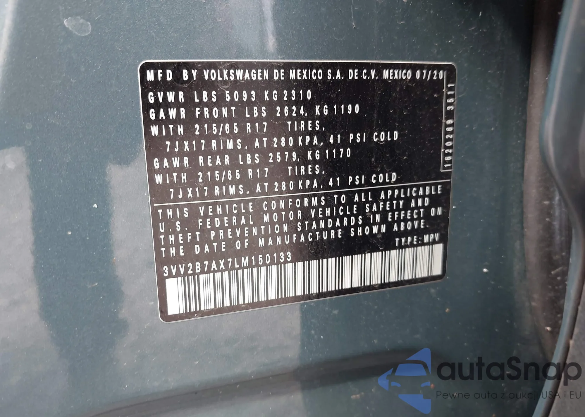 • VIN 3VV2B7AX7LM150133