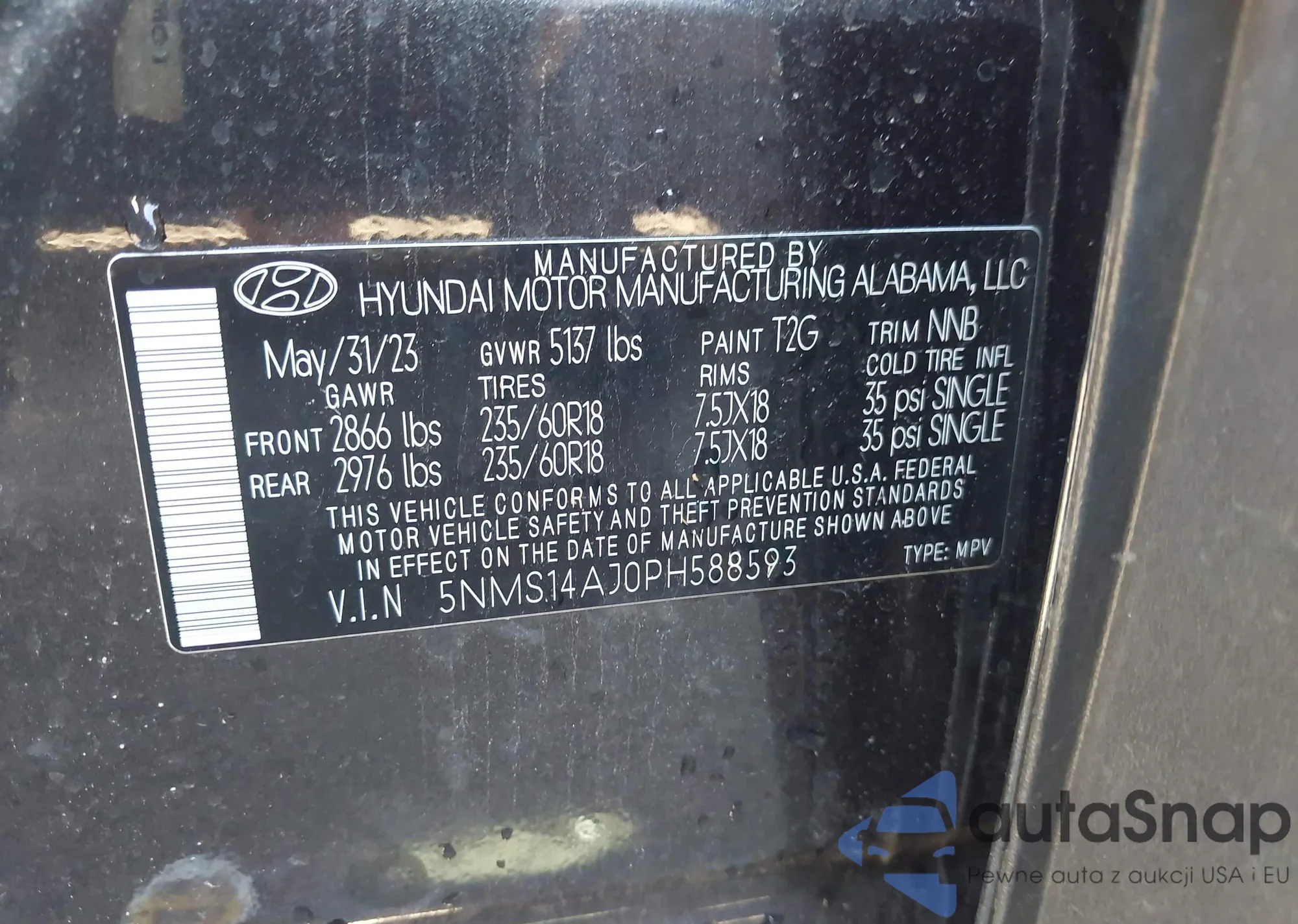 • VIN 5NMS14AJ0PH588593
