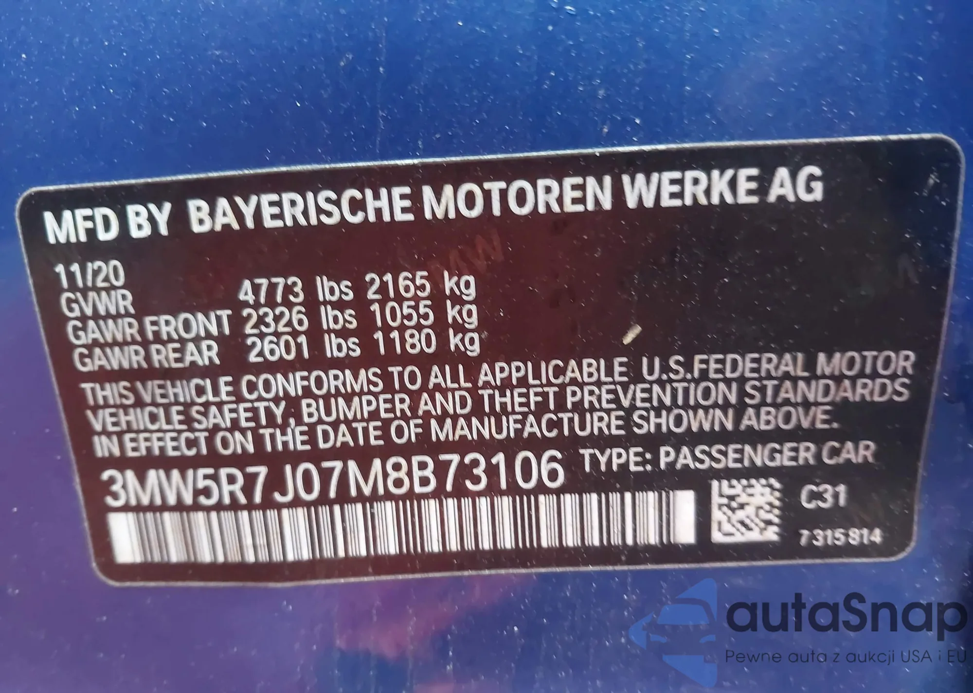 • VIN 3MW5R7J07M8B73106