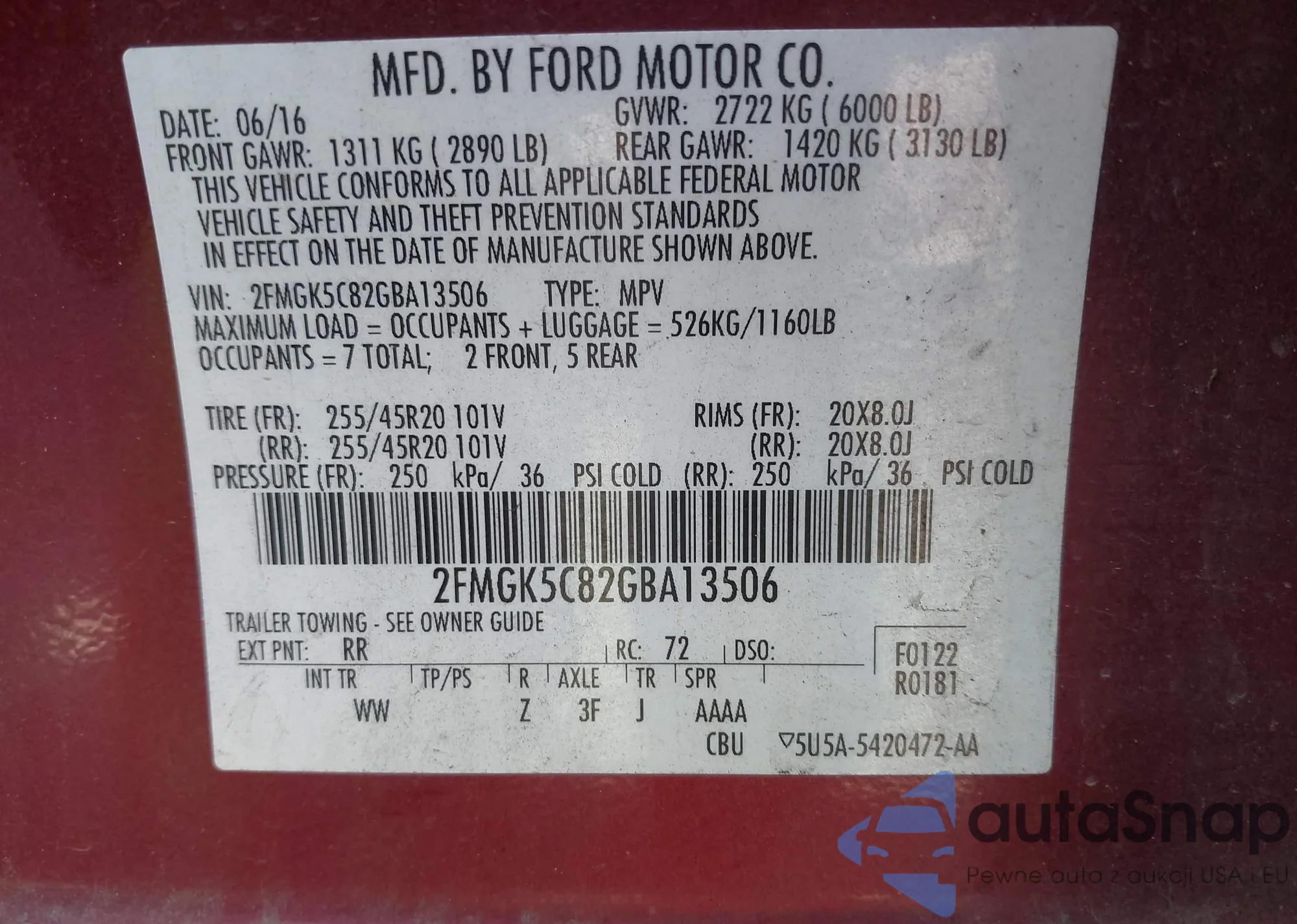 LOT: 42940943 VIN: 2FMGK5C82GBA13506