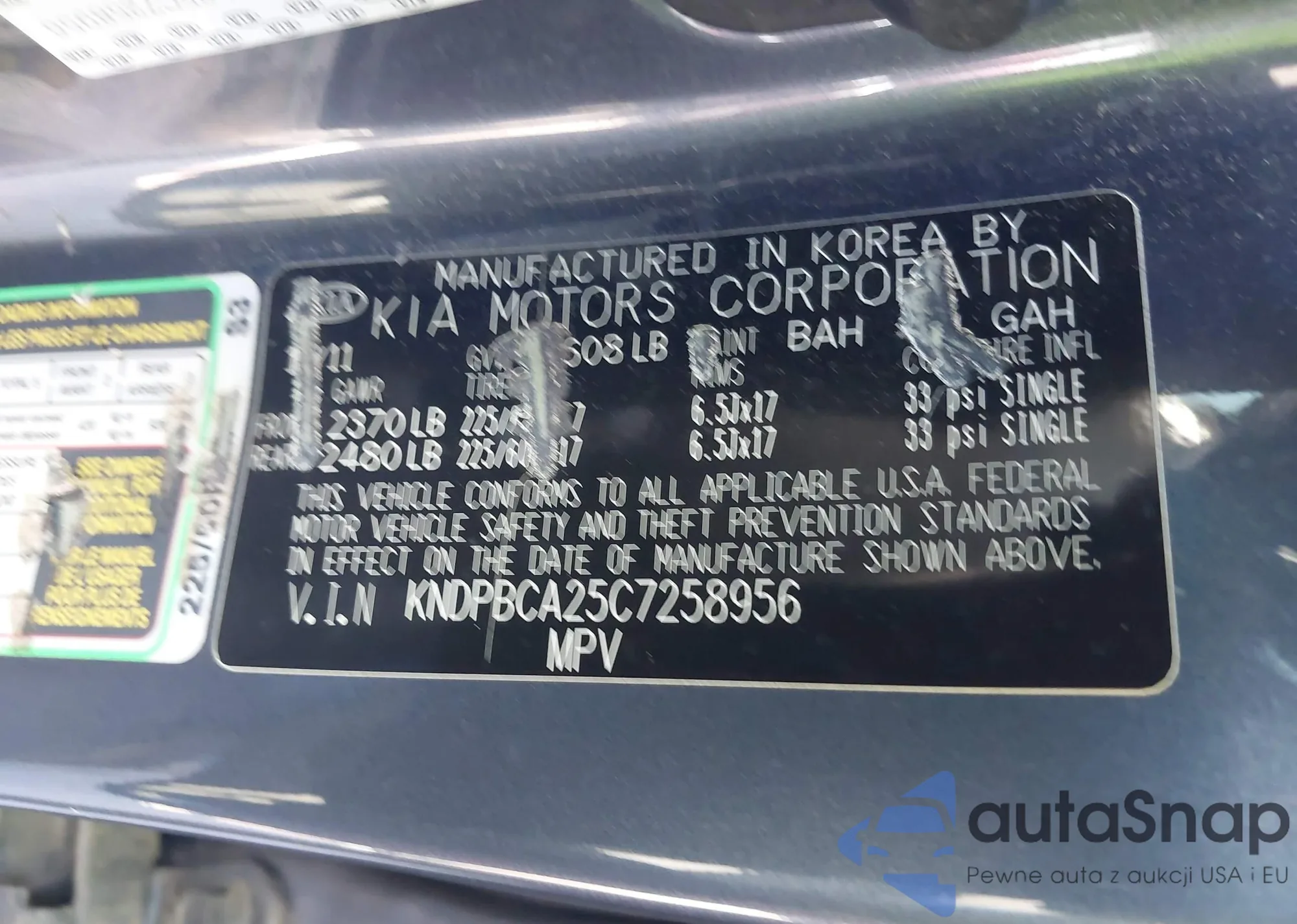• VIN KNDPBCA25C7258956