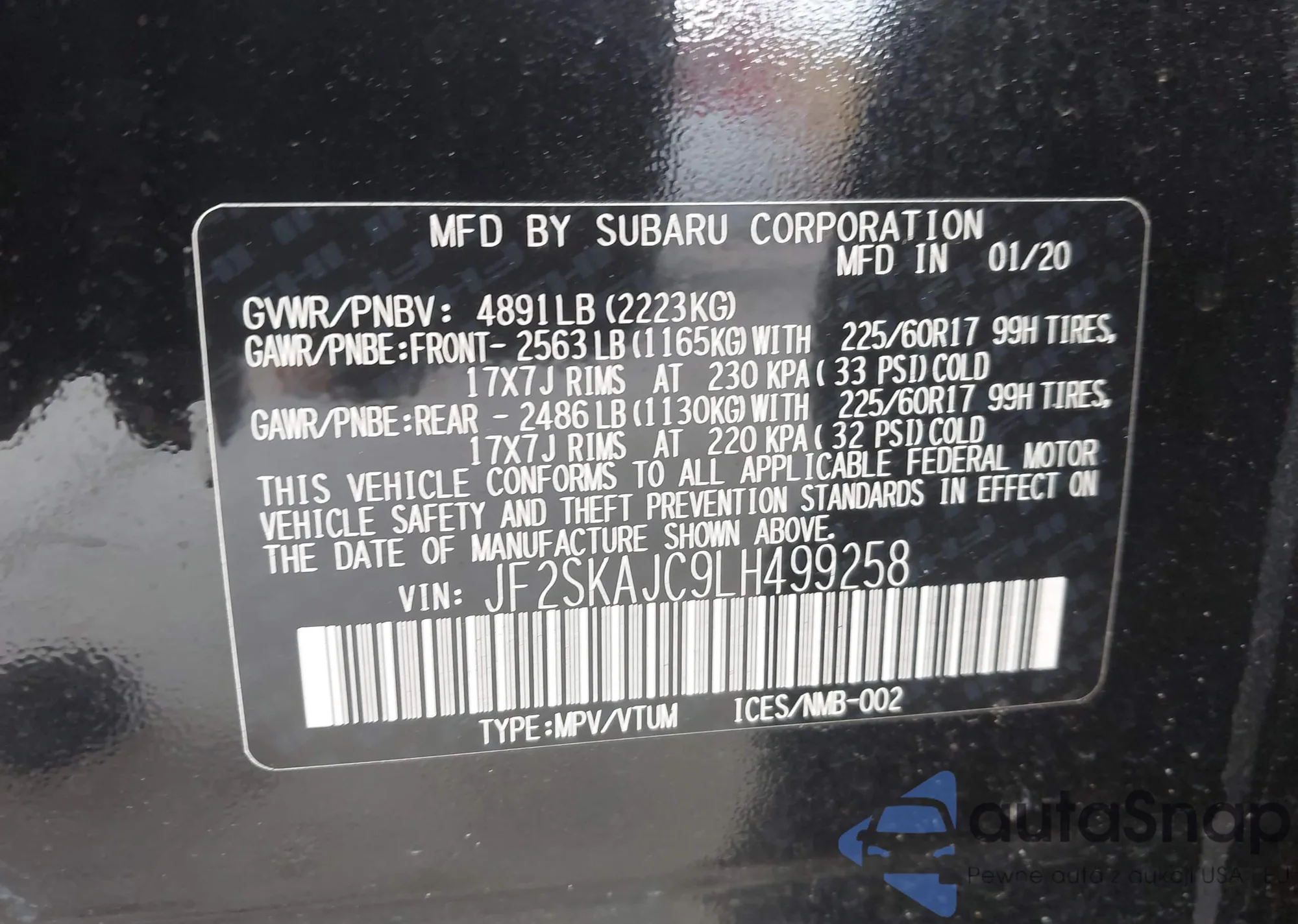 • VIN JF2SKAJC9LH499258