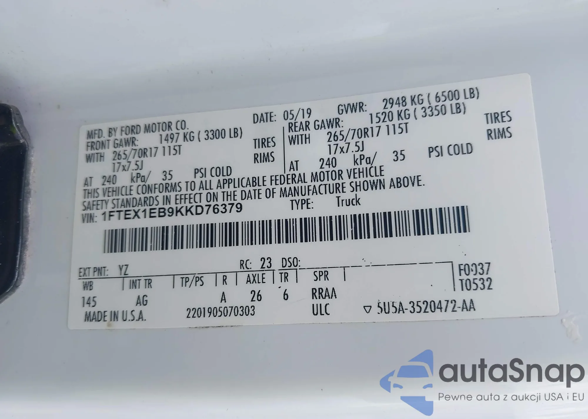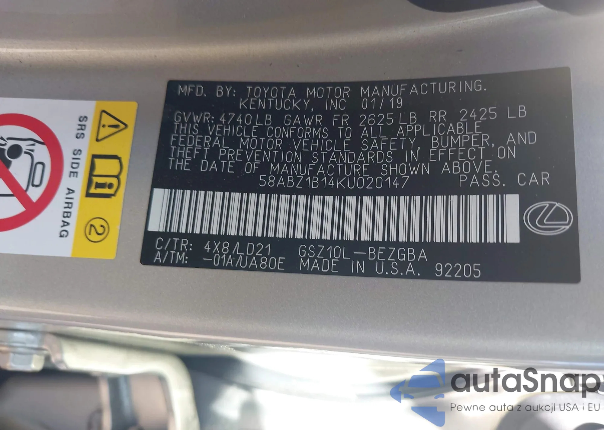 • VIN 58ABZ1B14KU020147