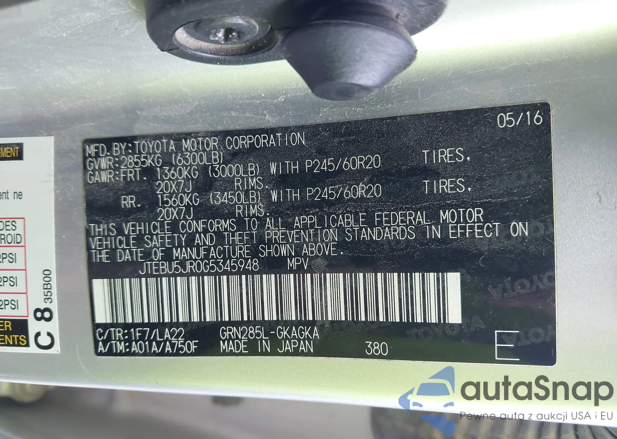 LOT: 43485621 VIN: JTMWF4DV7A5015119