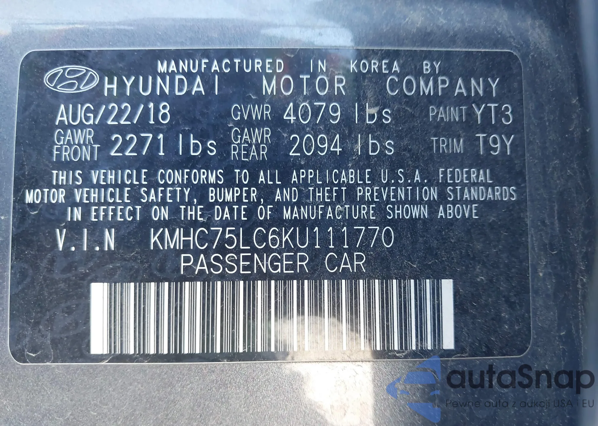 LOT: 43515545 VIN: KMHC75LC6KU111770