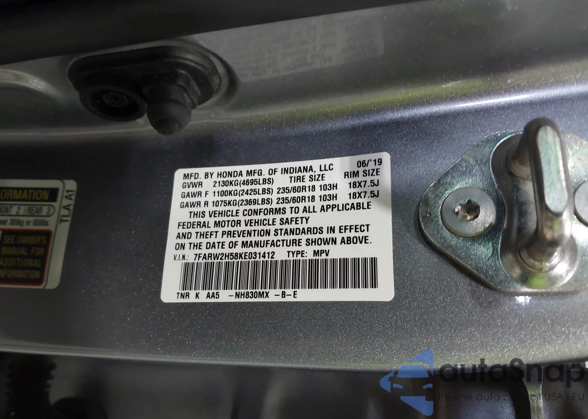 • VIN 7FARW2H58KE031412