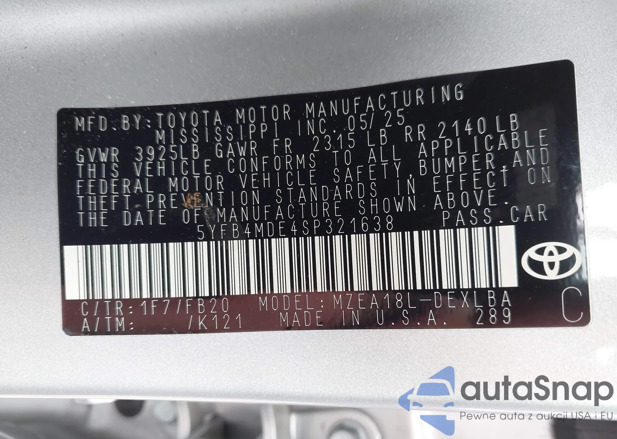 LOT: 43430692 VIN: JTDEAMDE1NJ052528