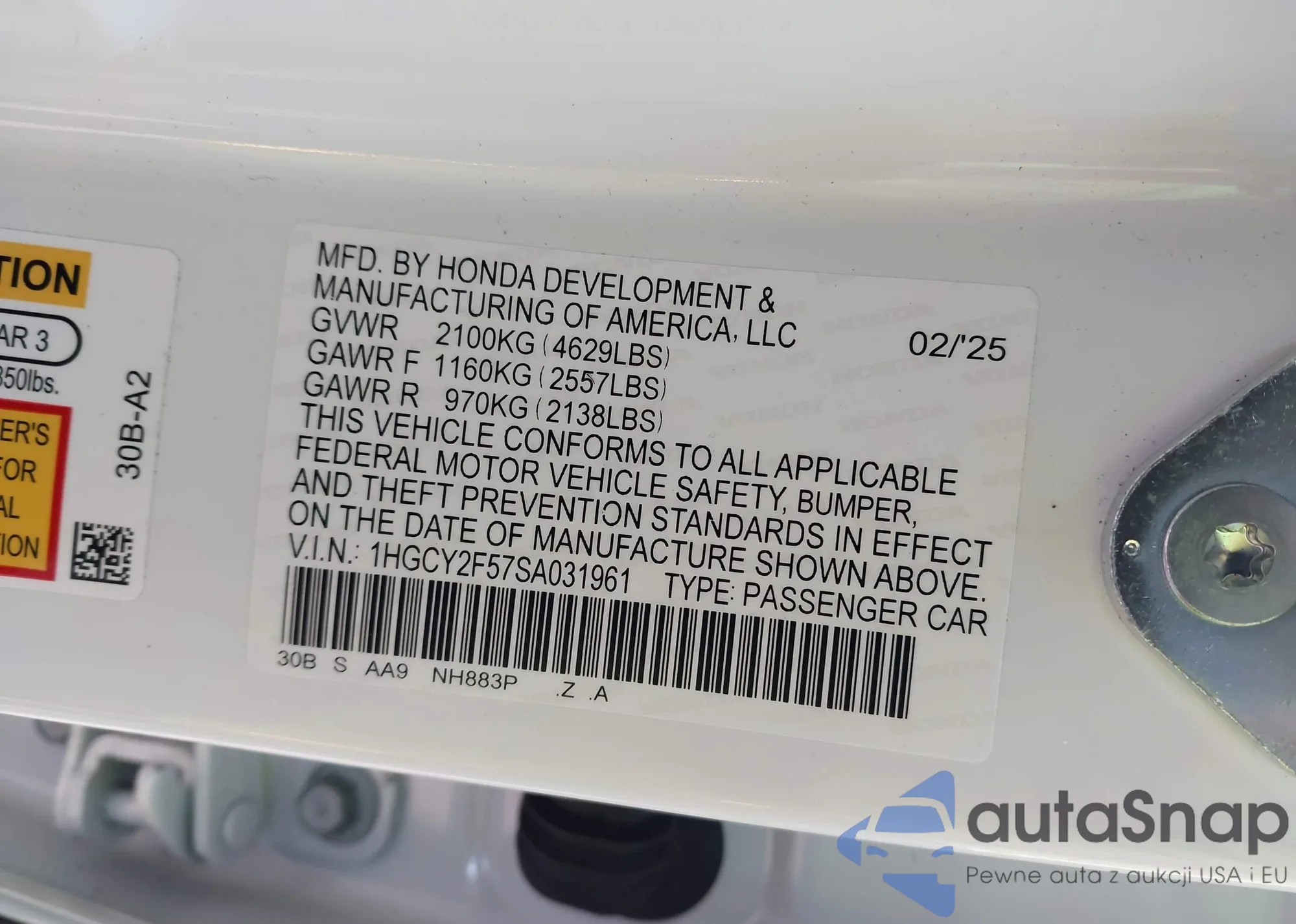 LOT: 43380556 VIN: 5FNYF4H49BB057897