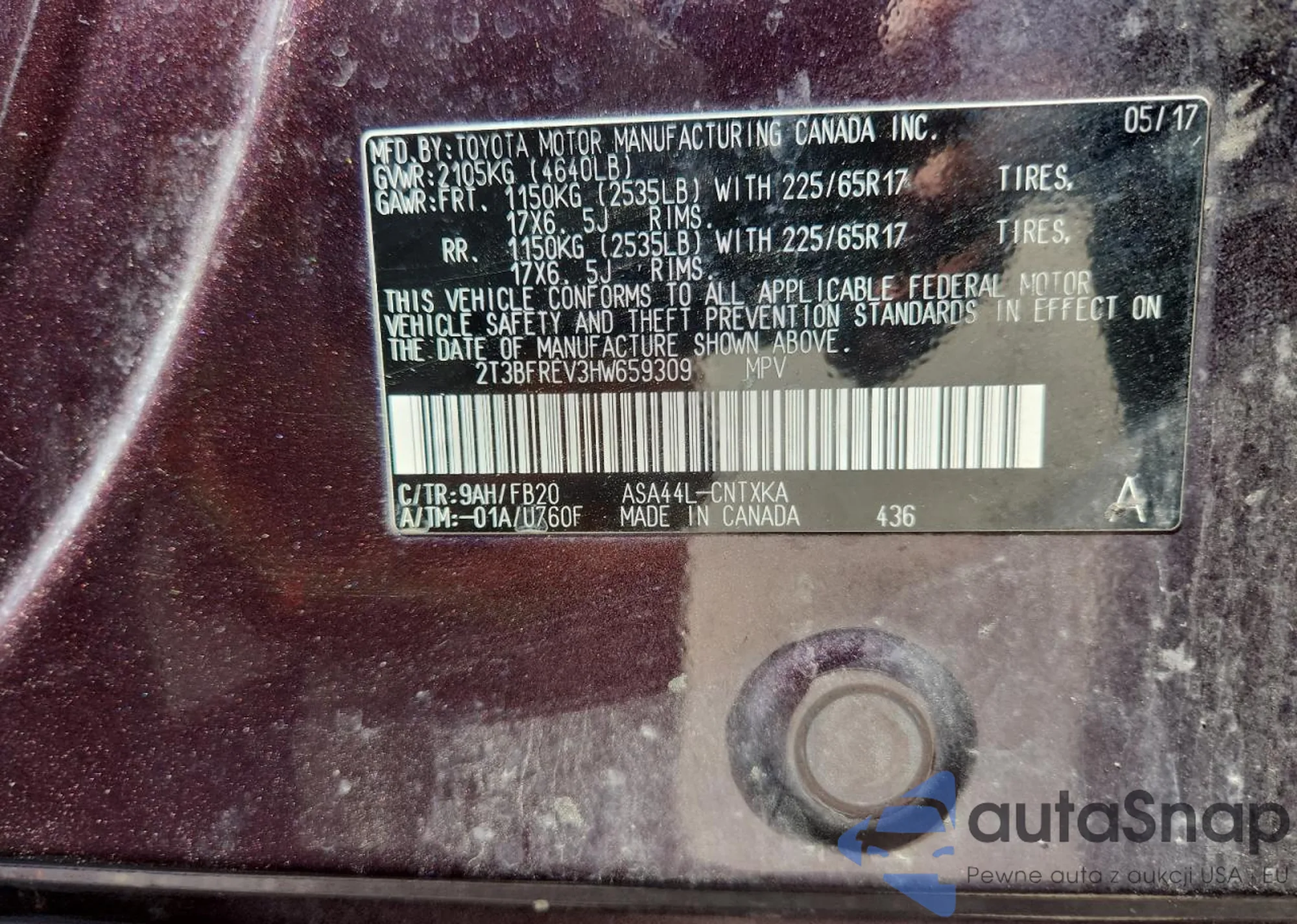 • VIN 2T3BFREV3HW659309