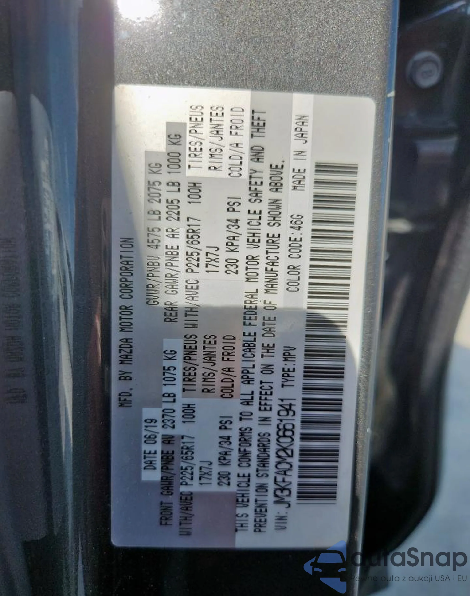 LOT: 46040365 VIN: JN1EV7EL1HM554609