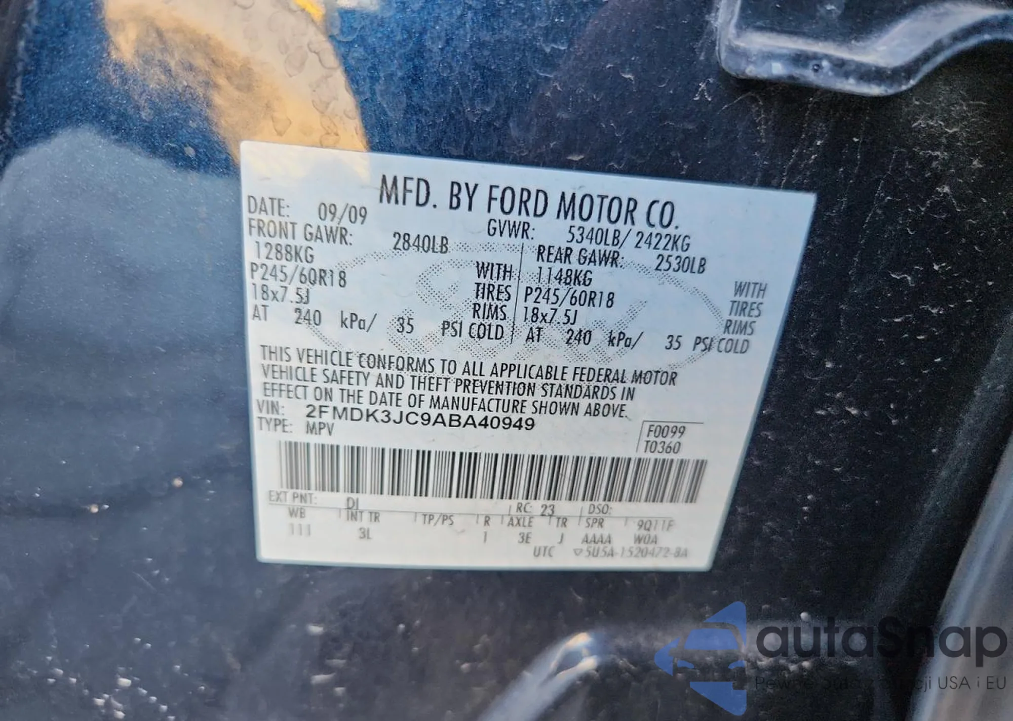 • VIN 2FMDK3JC9ABA40949