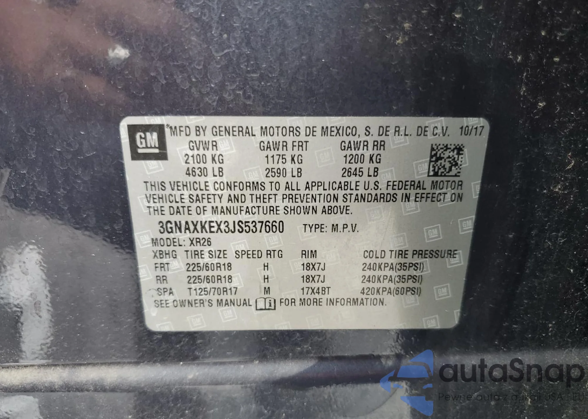 • VIN 3GNAXKEX3JS537660