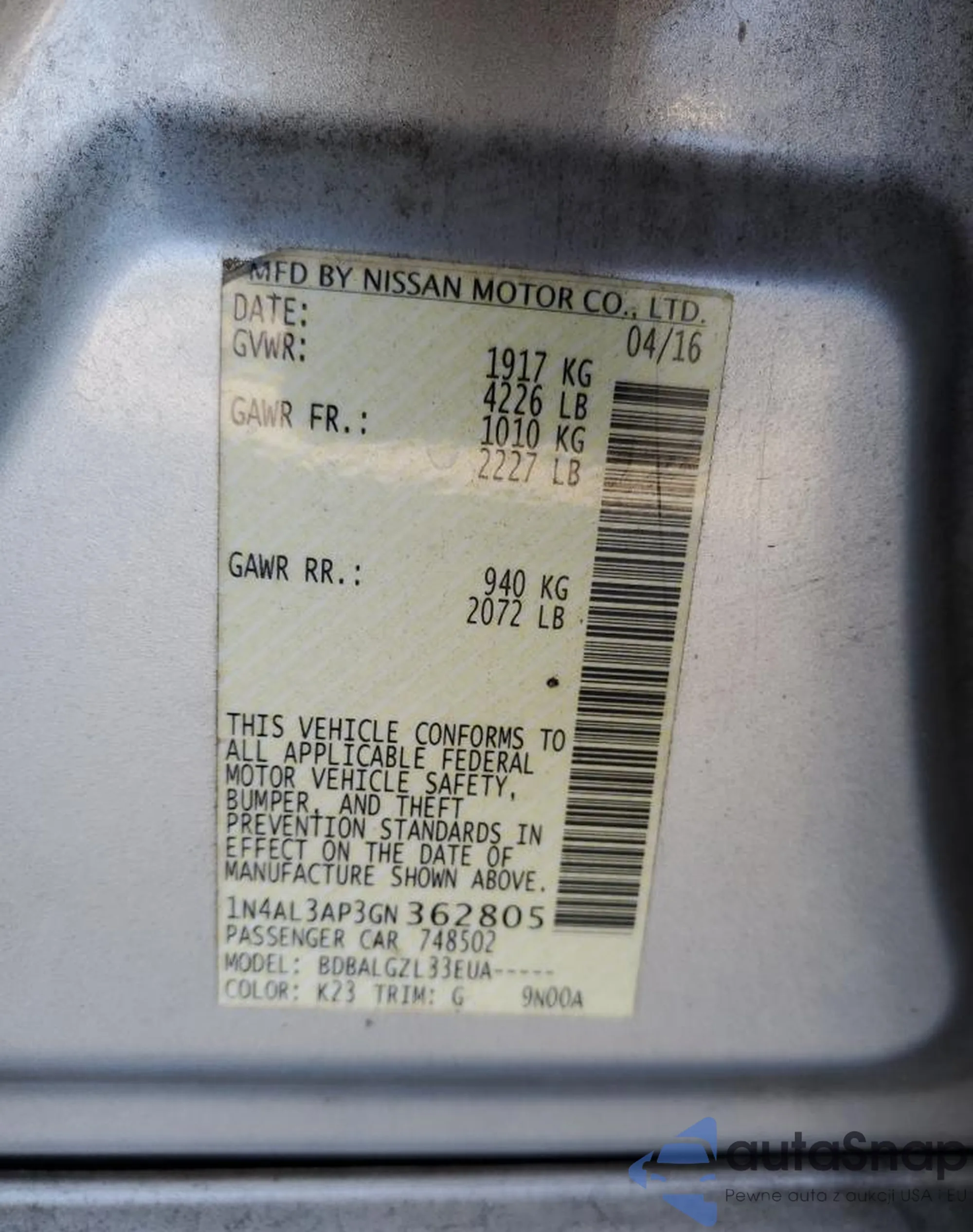 LOT: 85845155 VIN: 5N1AT2MV3HC814047