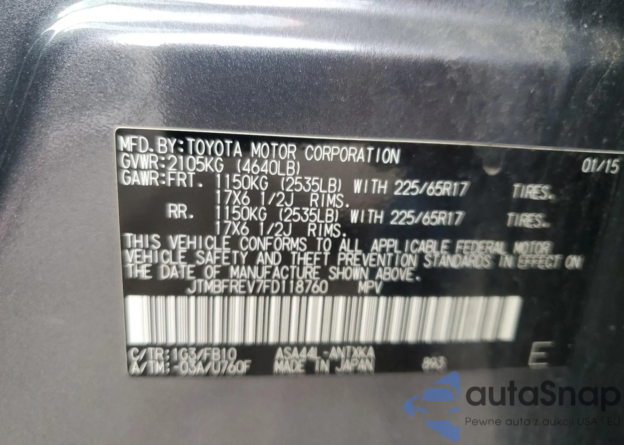• VIN JTMBFREV7FD118760