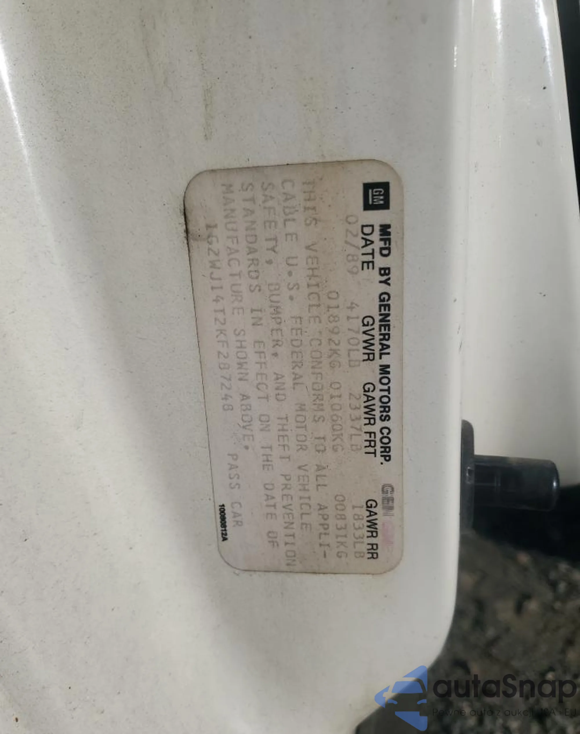 • VIN 1G2WJ14T2KF287248