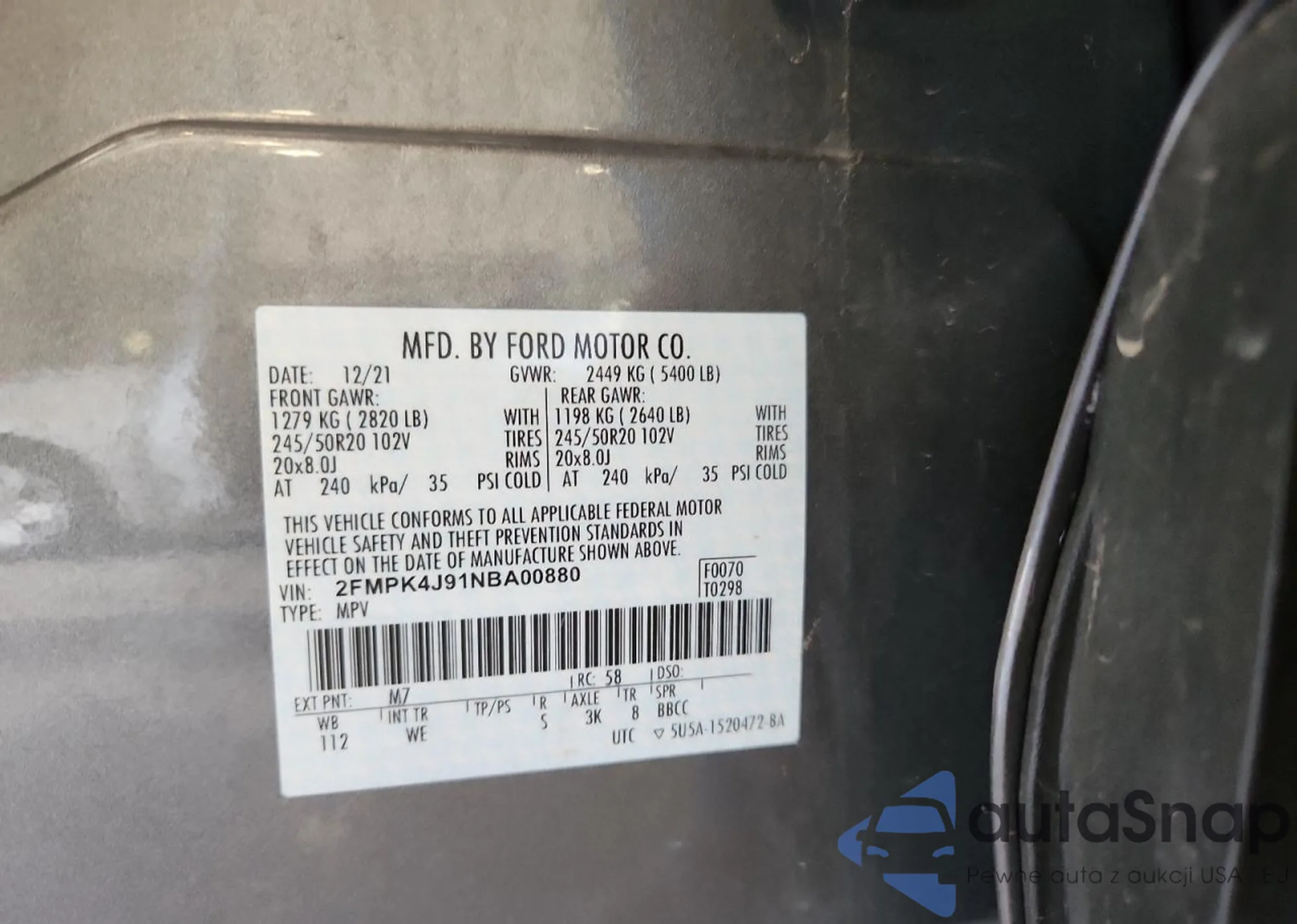 • VIN 1FM5K8FH3HGC84847