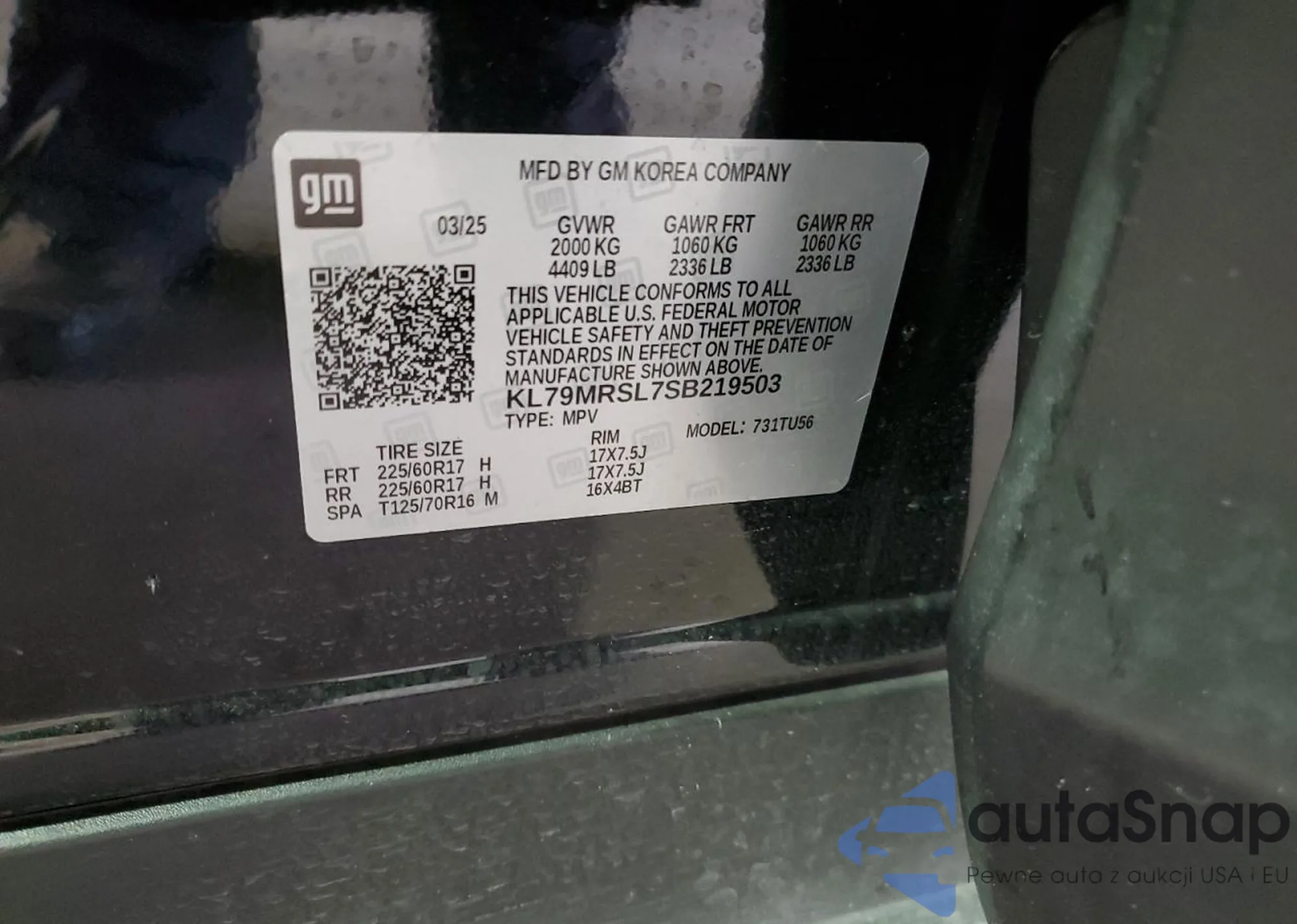 • VIN KL79MRSL7SB219503