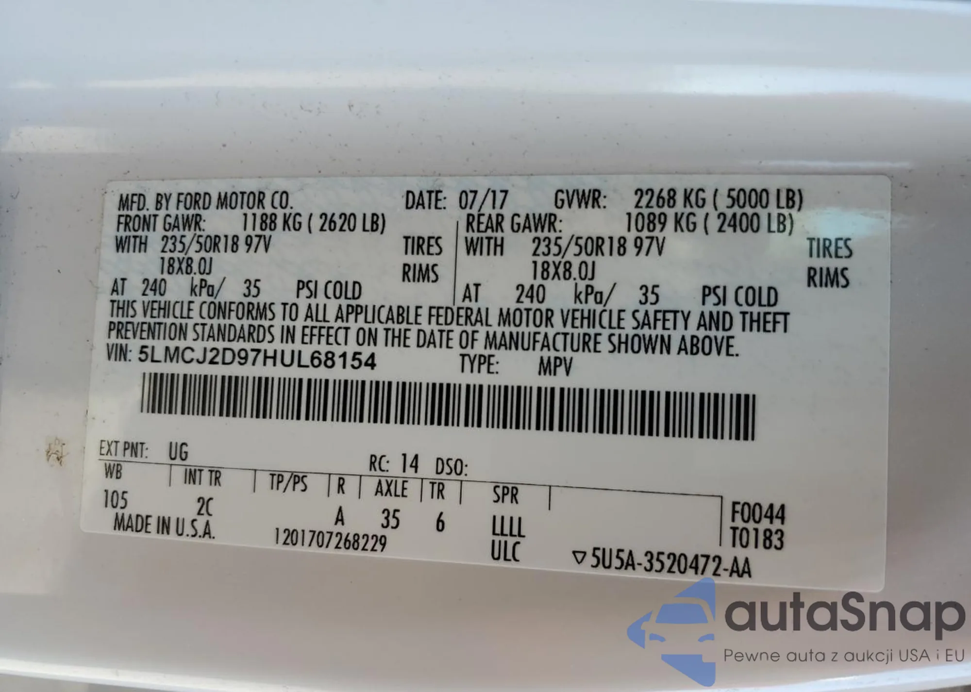 • VIN KMHLN4AG7NU337214