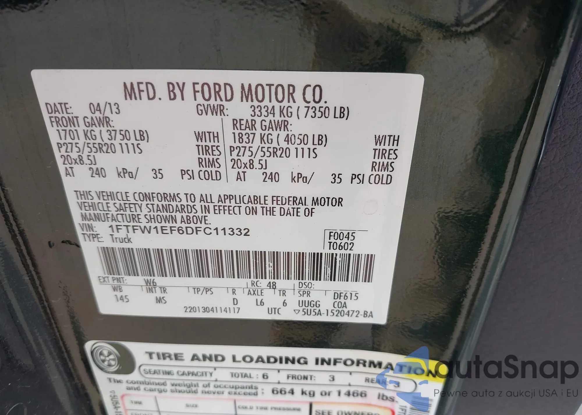 LOT: 43520582 VIN: 1FTPW14V09FB09738