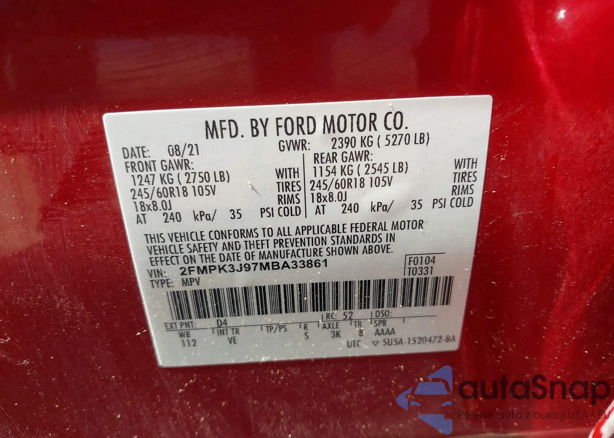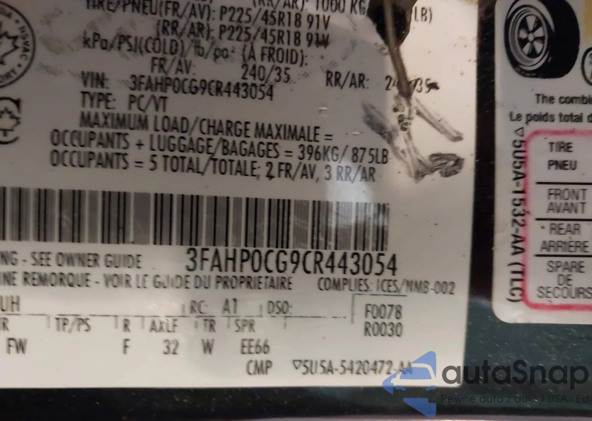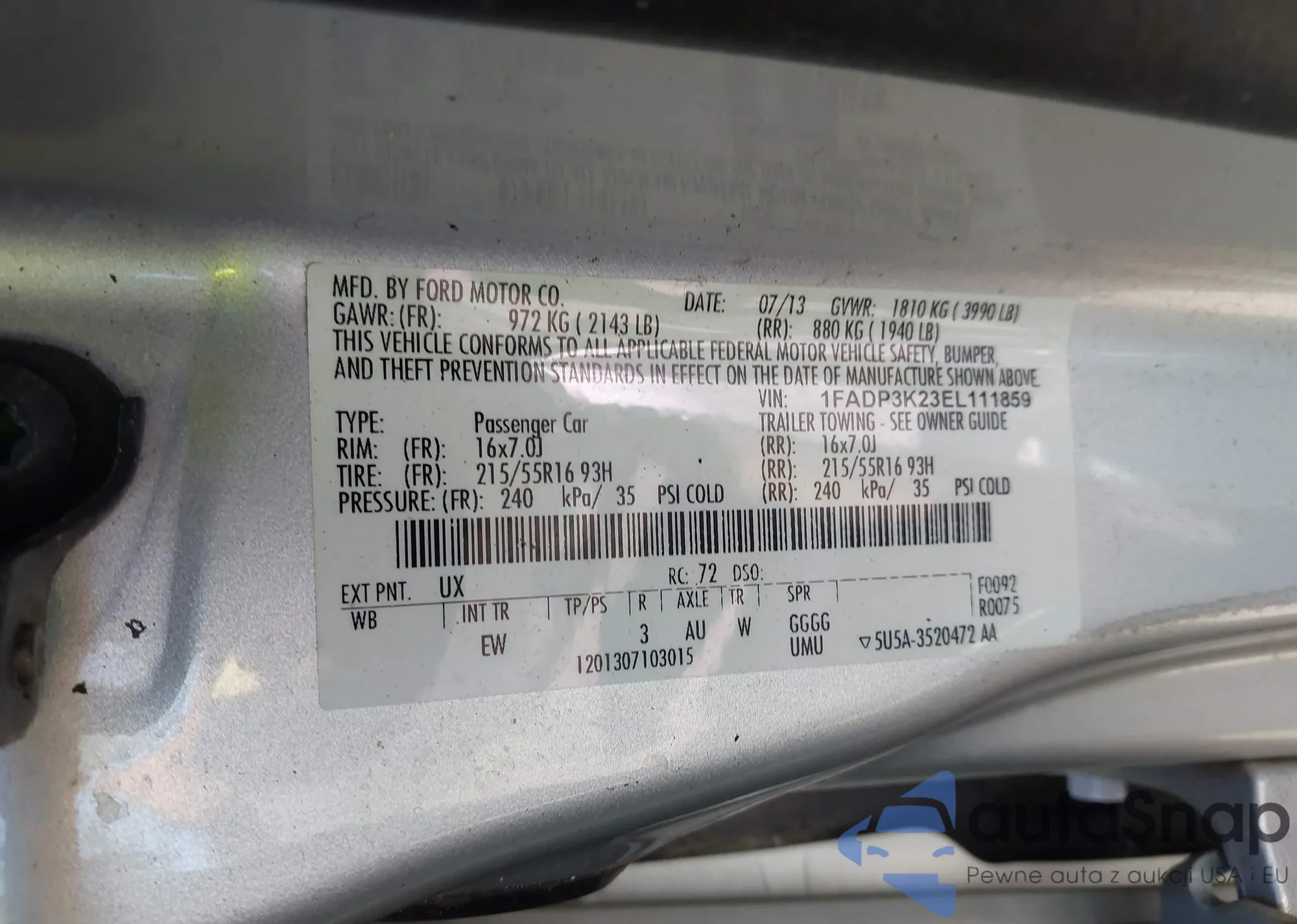 • VIN 3FA6P0K9XER243734