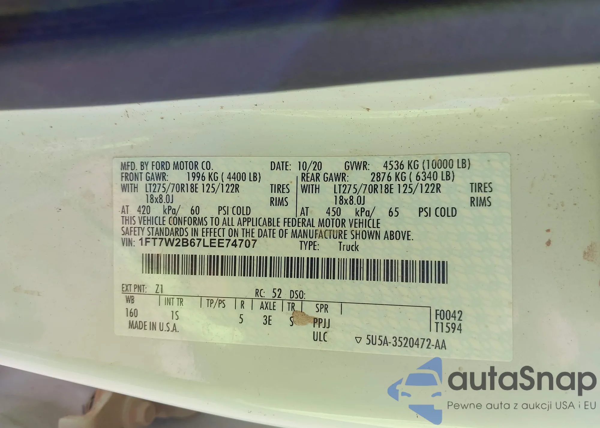 • VIN 1FT7W2B67LEE74707