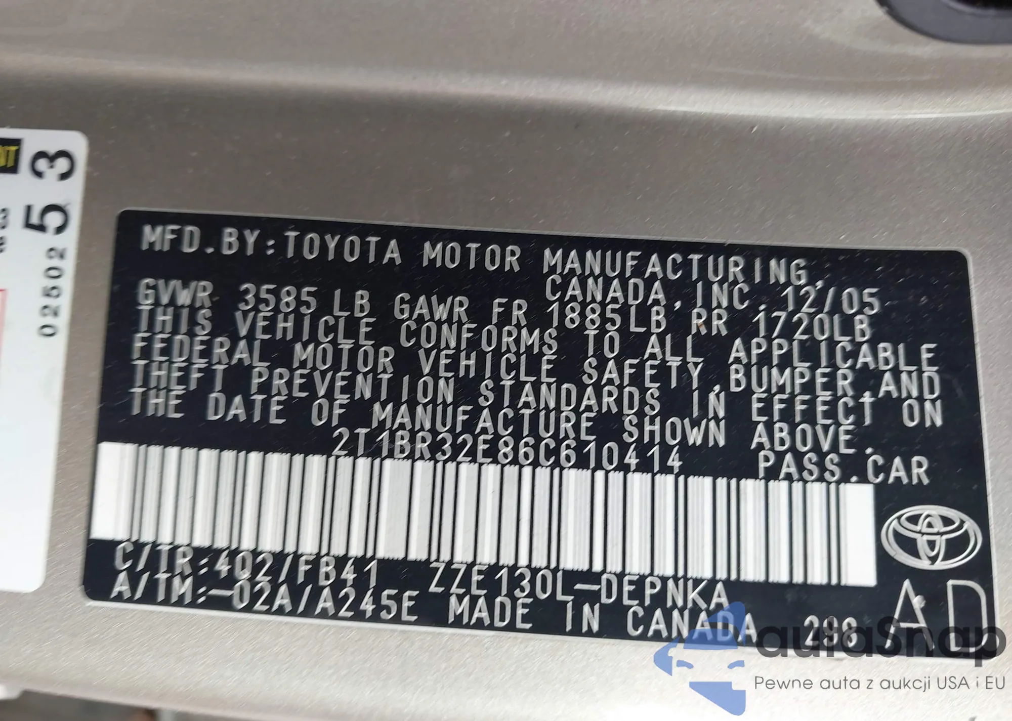 LOT: 43125520 VIN: WBAUP93559VF48178