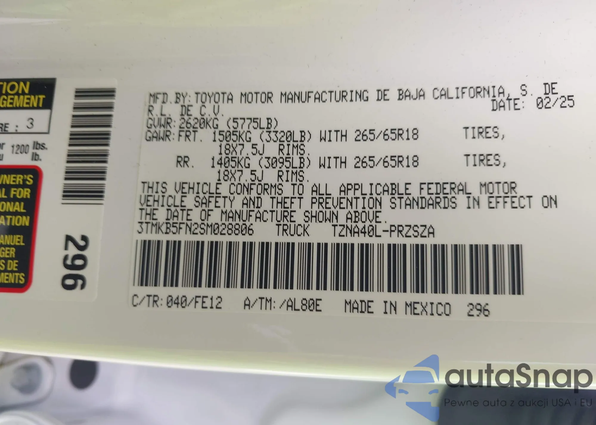 • VIN 3TMKB5FN2SM028806