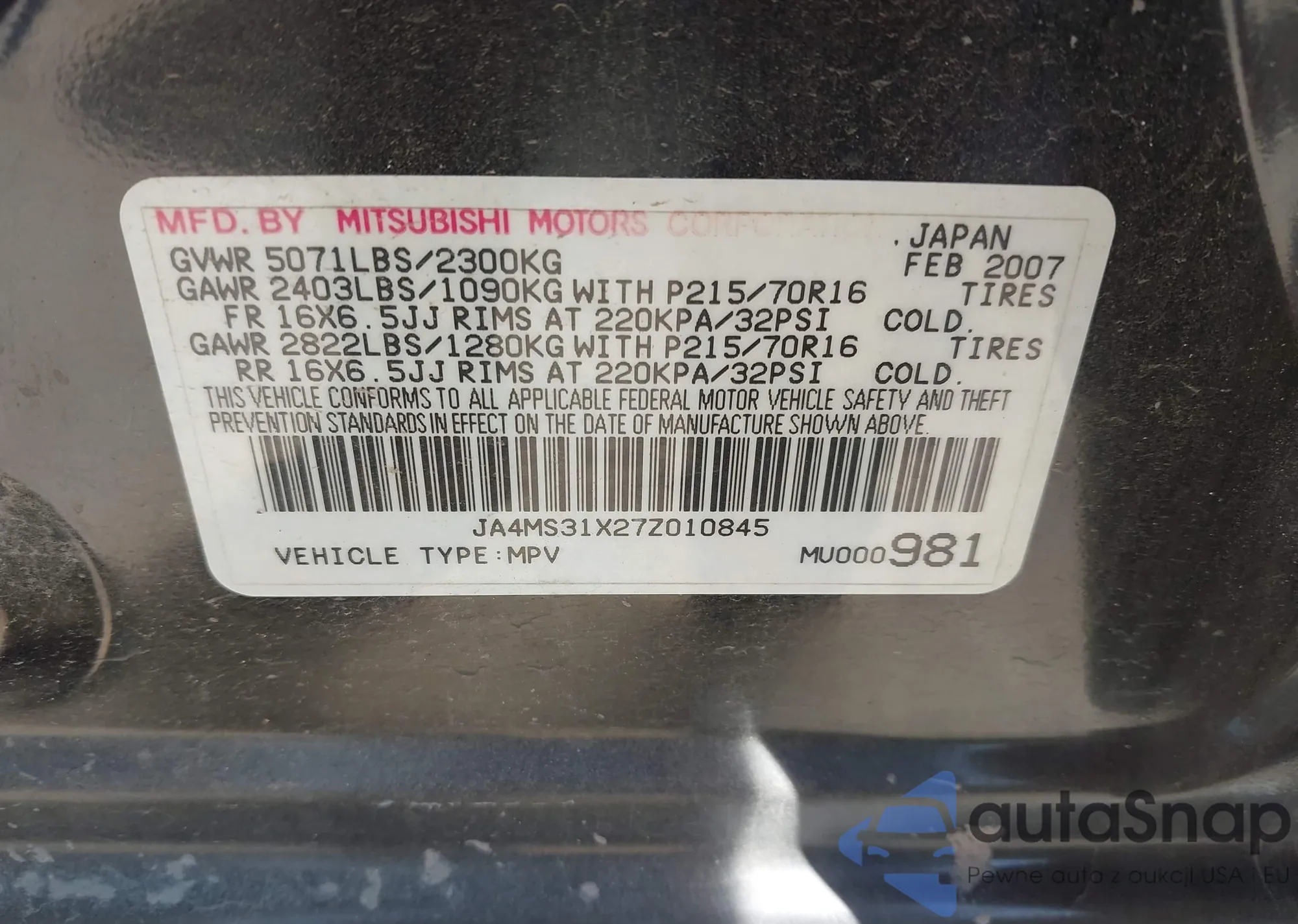 LOT: 43295193 VIN: 1J4GL48K27W632681