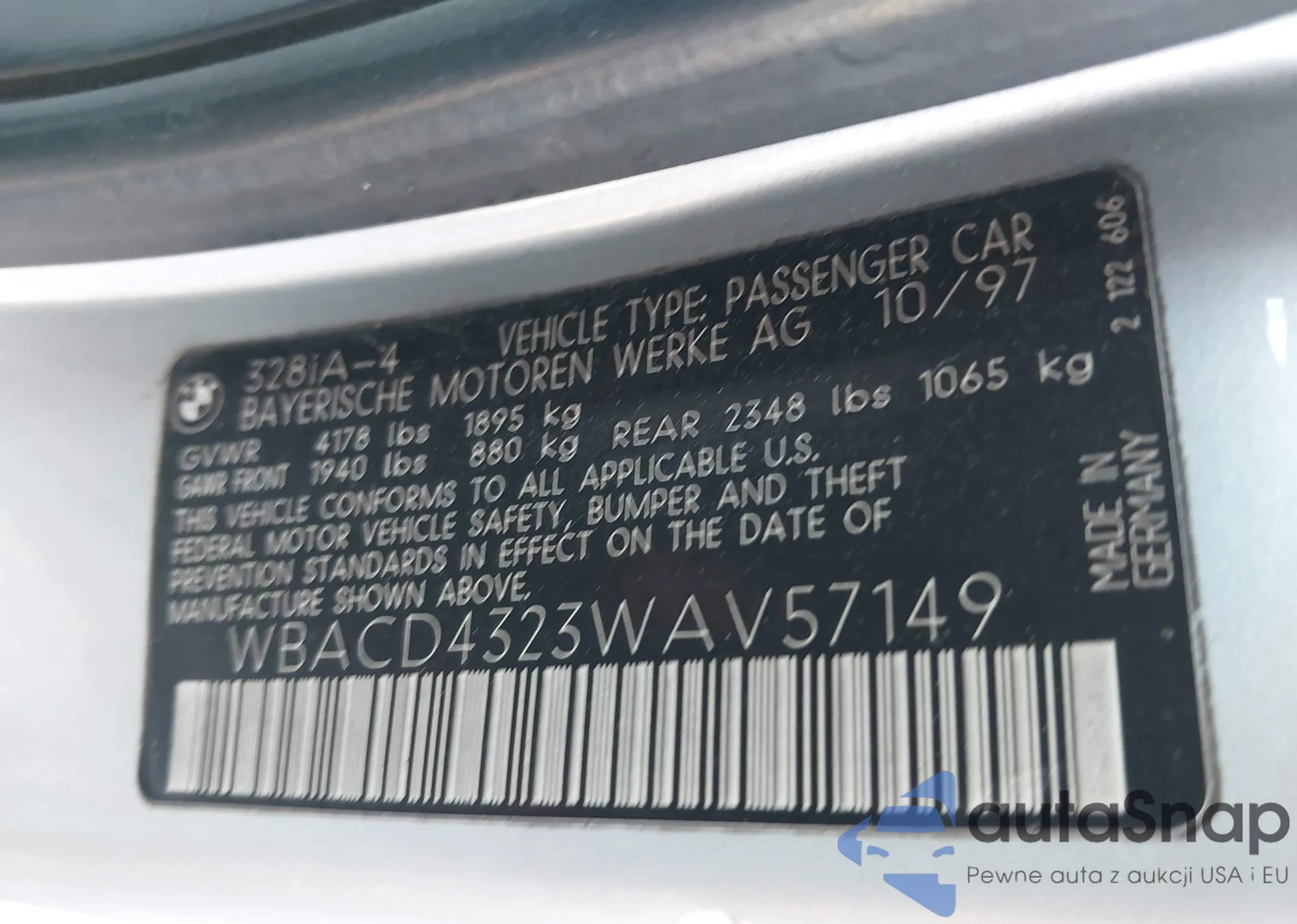 LOT: 43190015 VIN: WBACD4323WAV57149