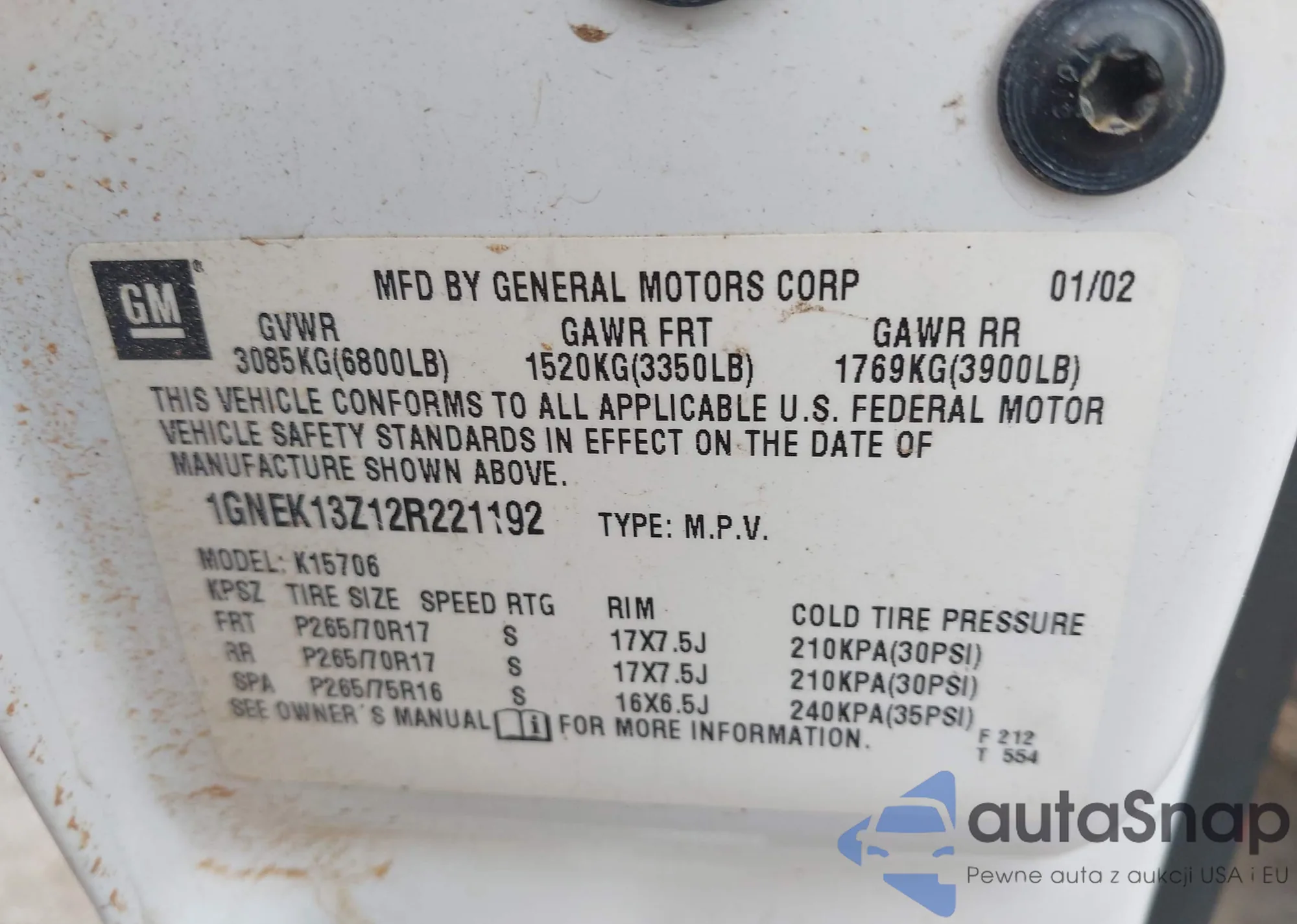 • VIN 3GNFK16Z64G266907