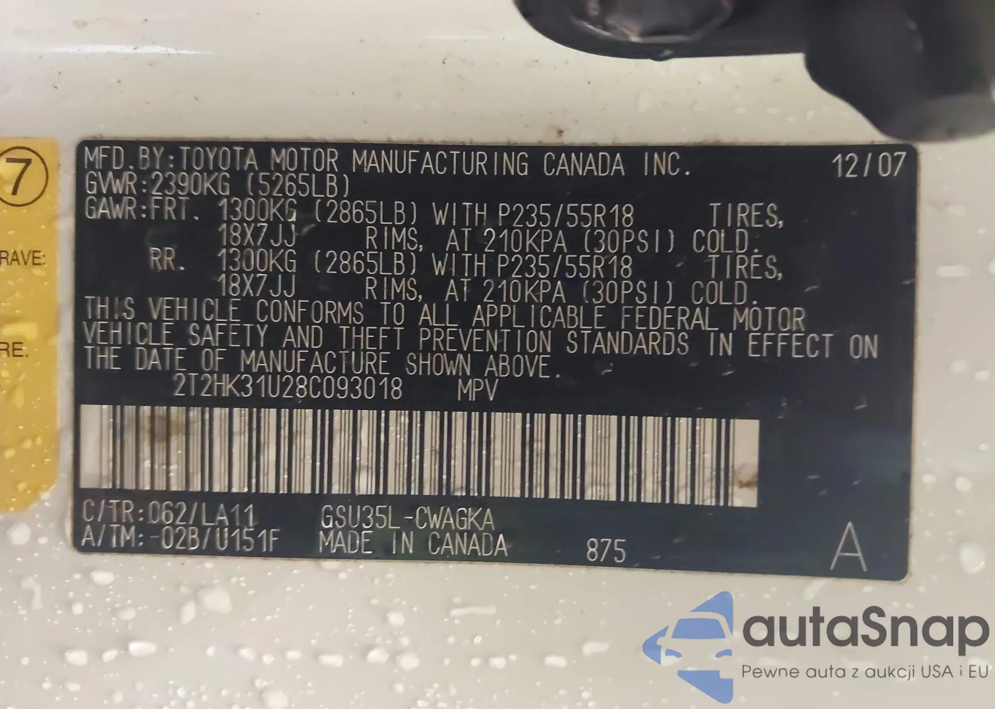 • VIN 2T2HK31U28C093018