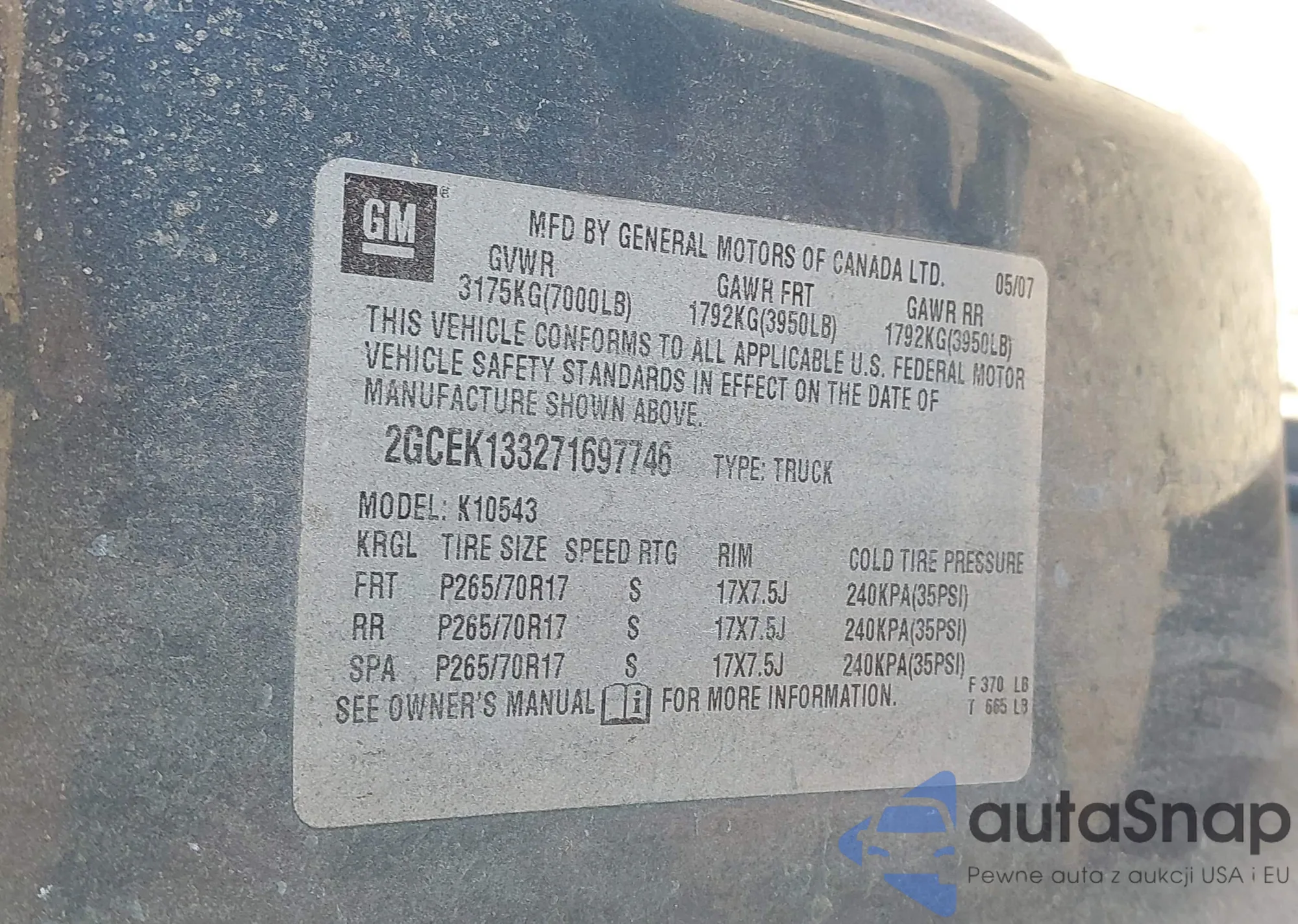 • VIN 2GCEK133271697746