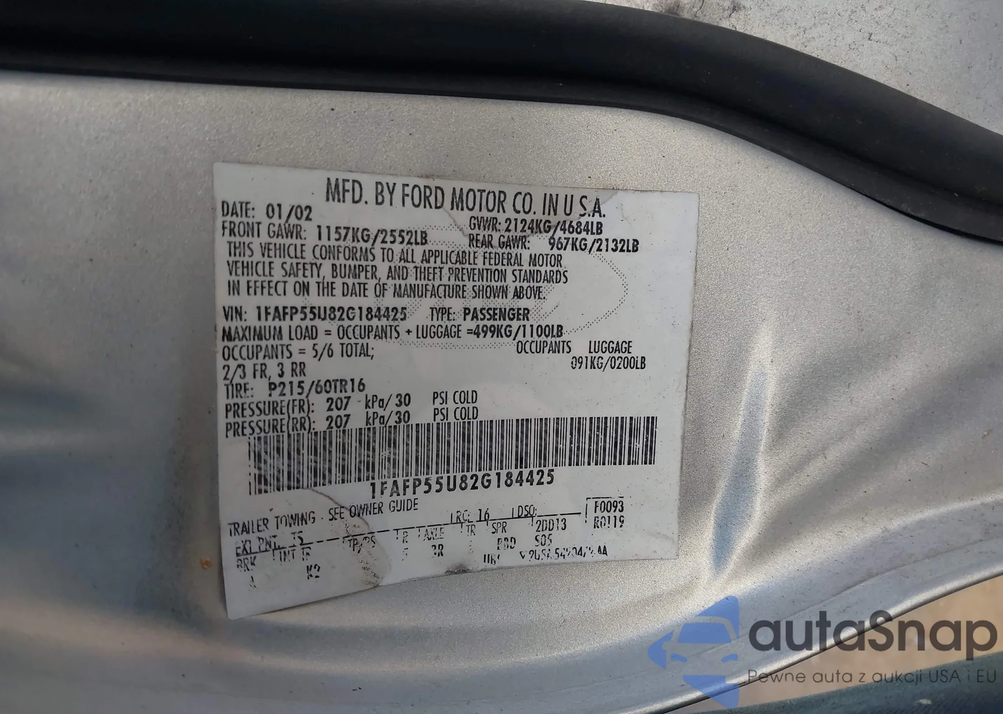 LOT: 43557189 VIN: 1FAFP55U82G184425