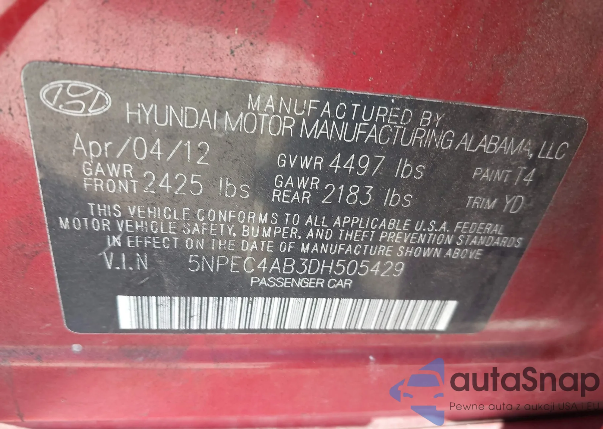 • VIN 5NPEC4AB3DH505429