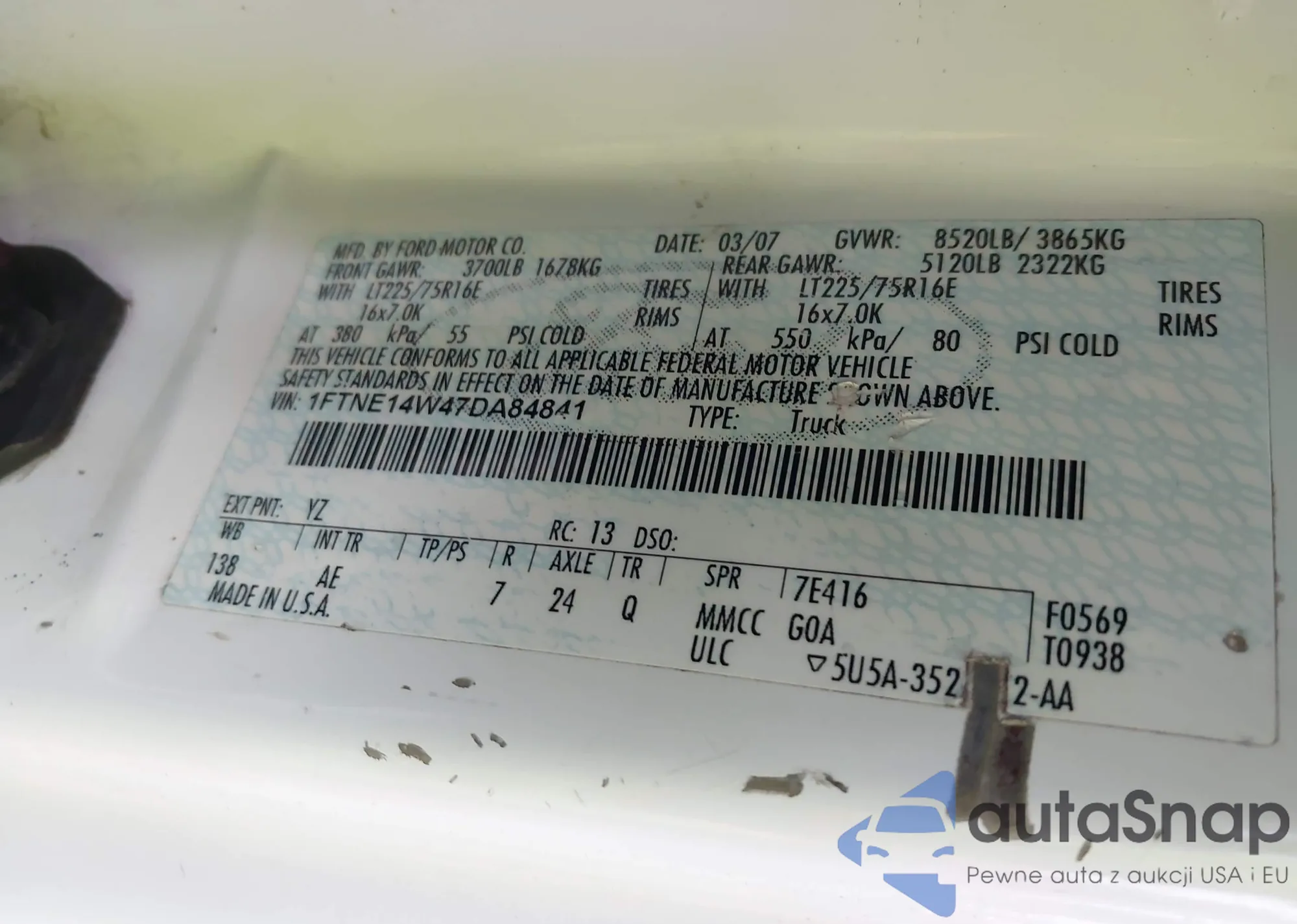 LOT: 43478562 VIN: 1FTNE14W47DA84841