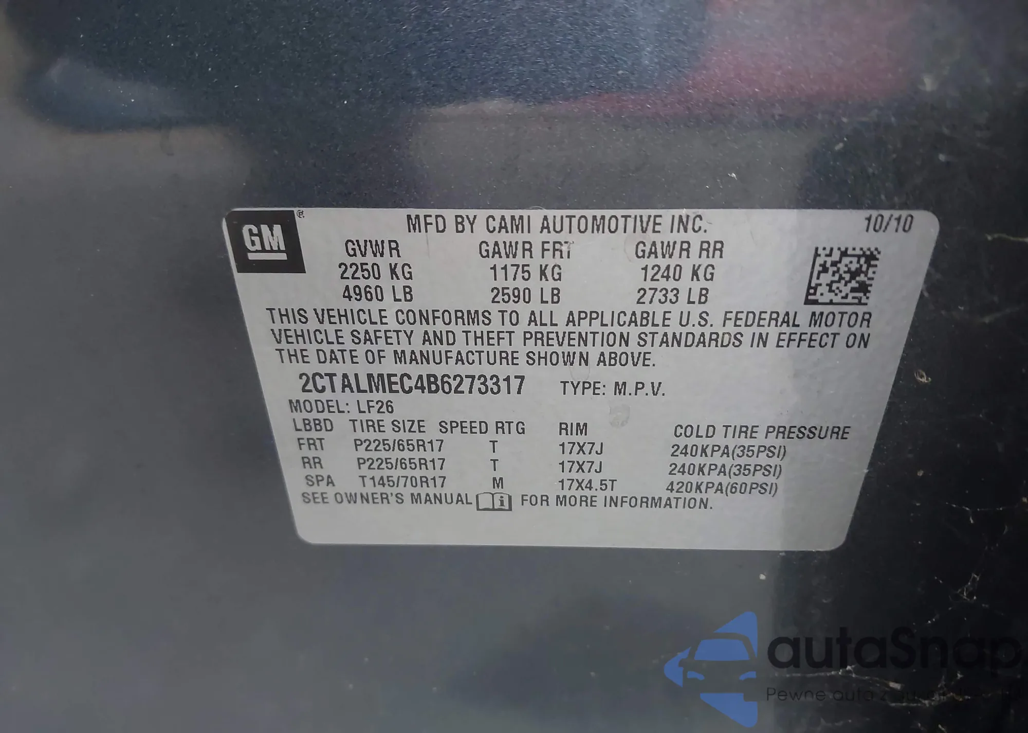 • VIN 1N4BL4CV0PN367272
