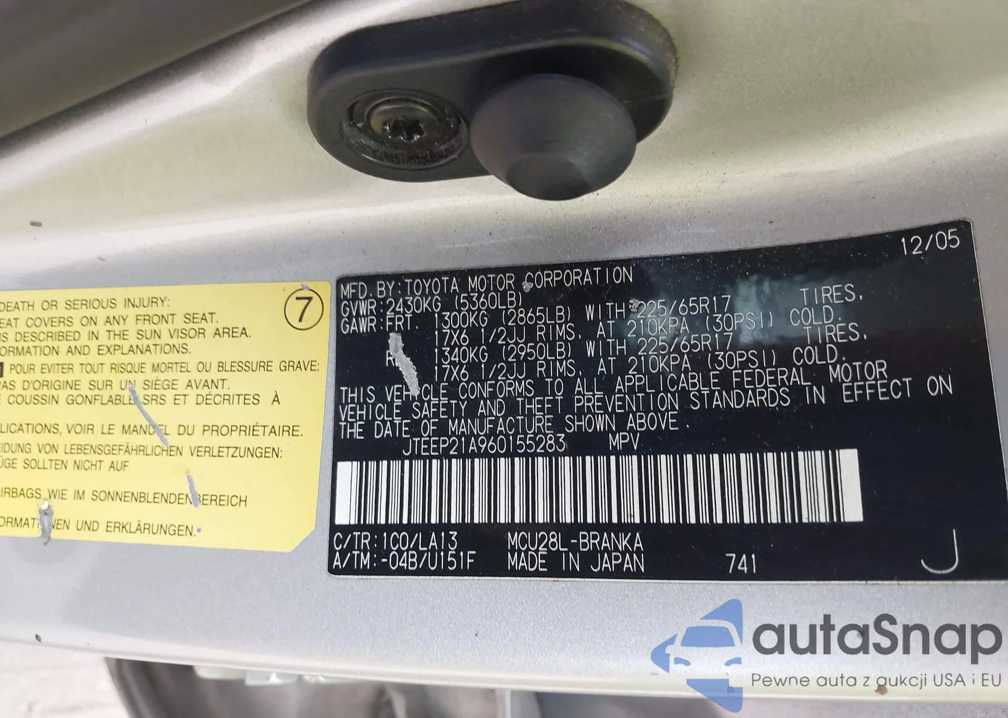 LOT: 42900991 VIN: 1N4BL4CV0PN367272