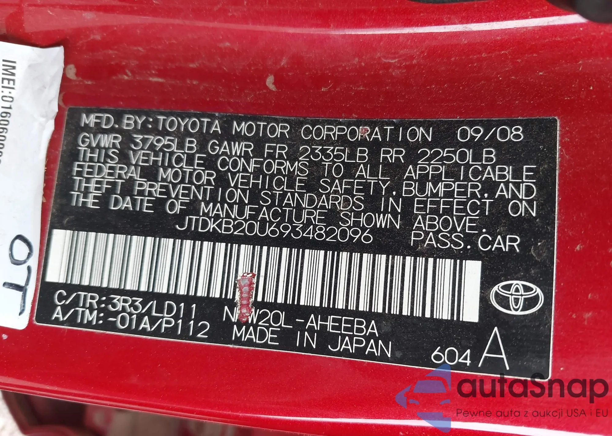 LOT: 43232929 VIN: 4T1DAACK5SU168824