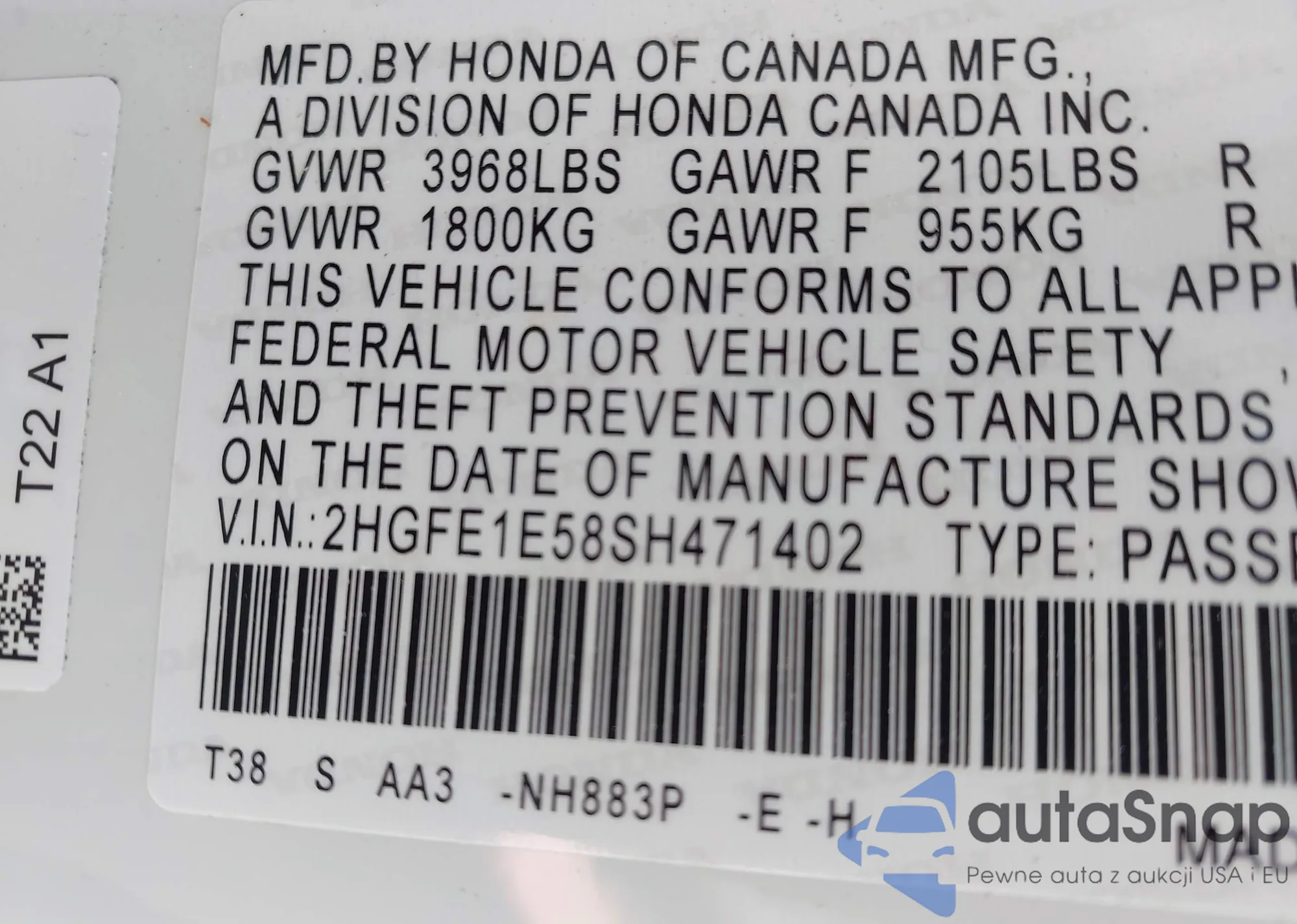 LOT: 43043719 VIN: JHMGE8H50CC038196