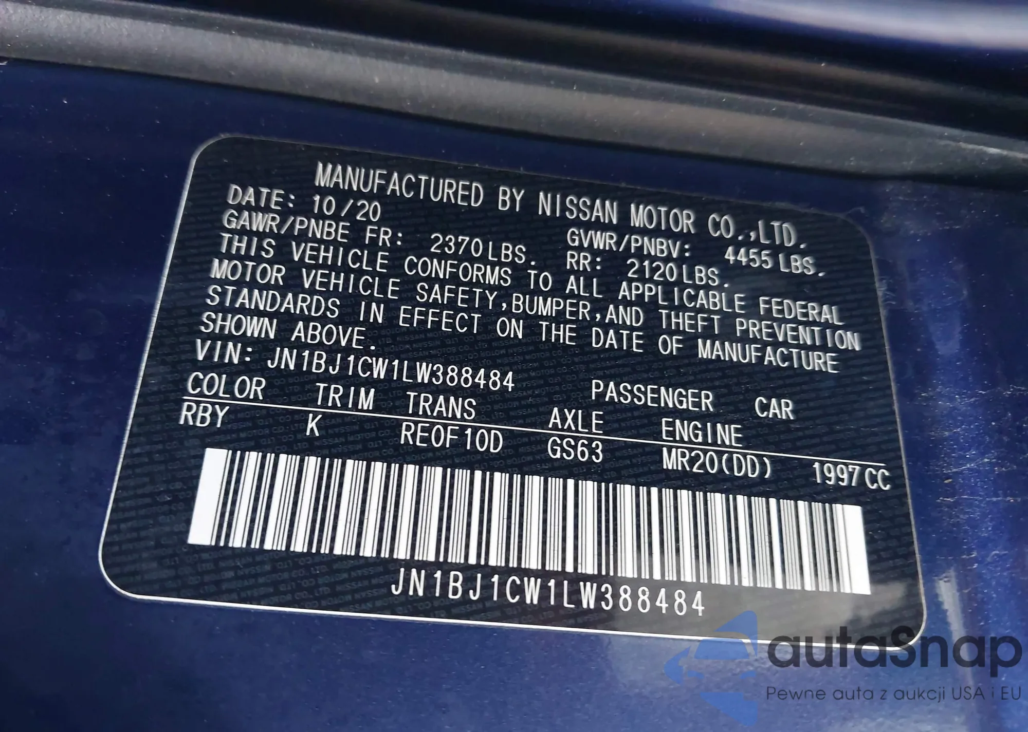 • VIN 4T1BF1FKXEU447288