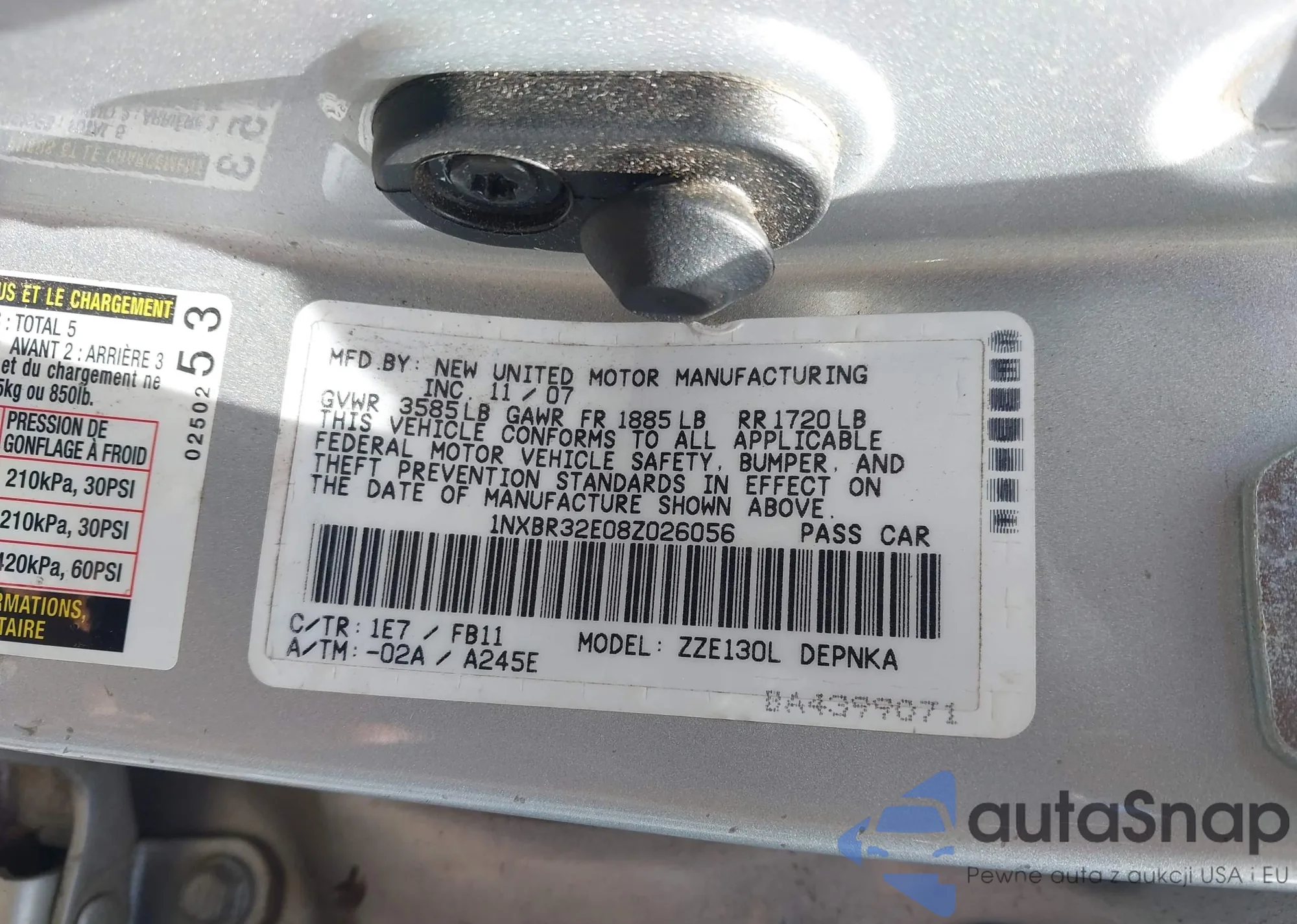 LOT: 43045694 VIN: 1NXBR32E08Z026056