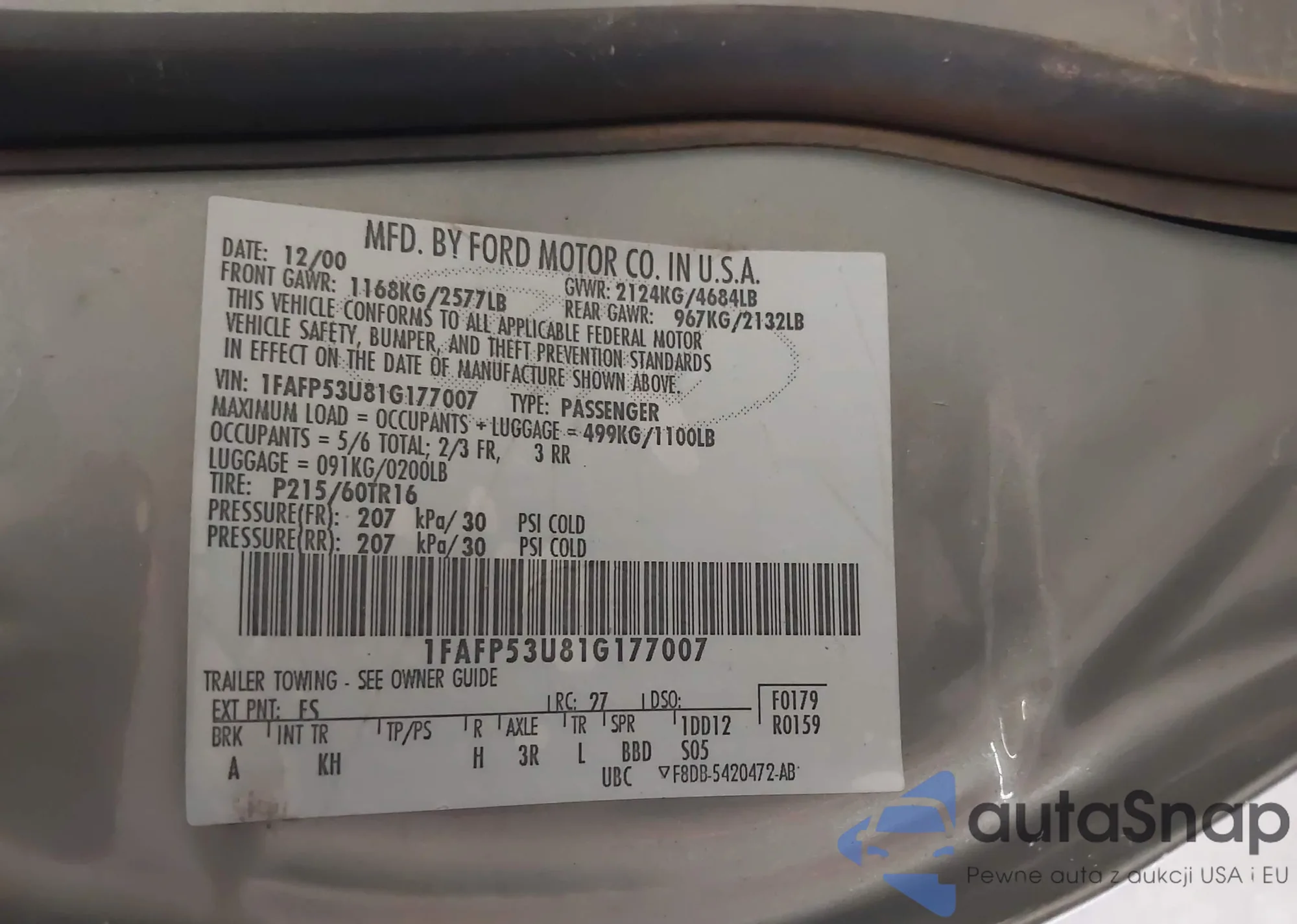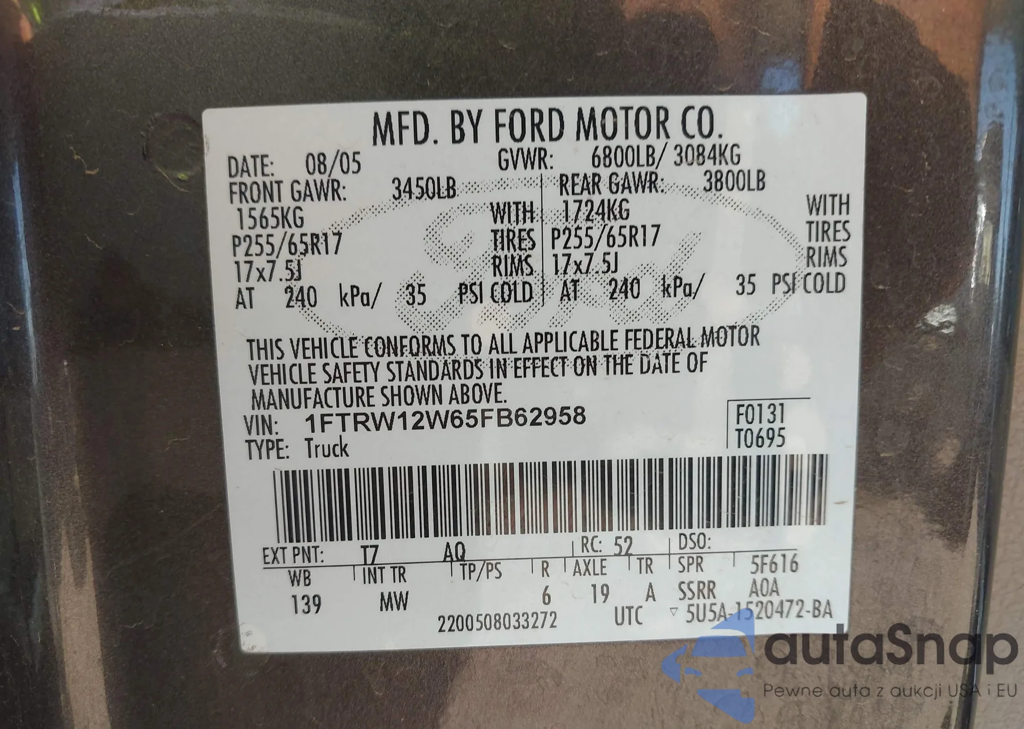 LOT: 43042273 VIN: WDBUF83J65X170718
