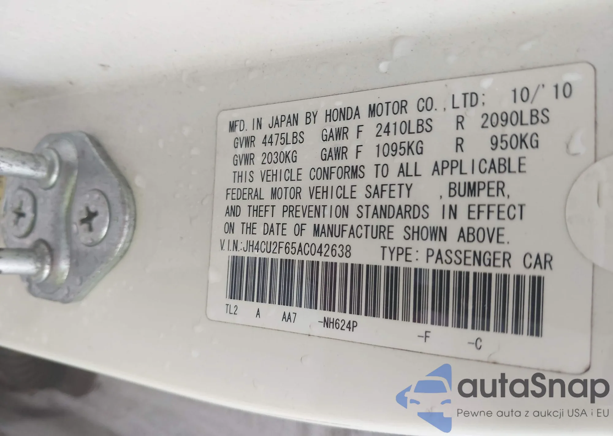 LOT: 43347618 VIN: 5FNYF4H29BB025353