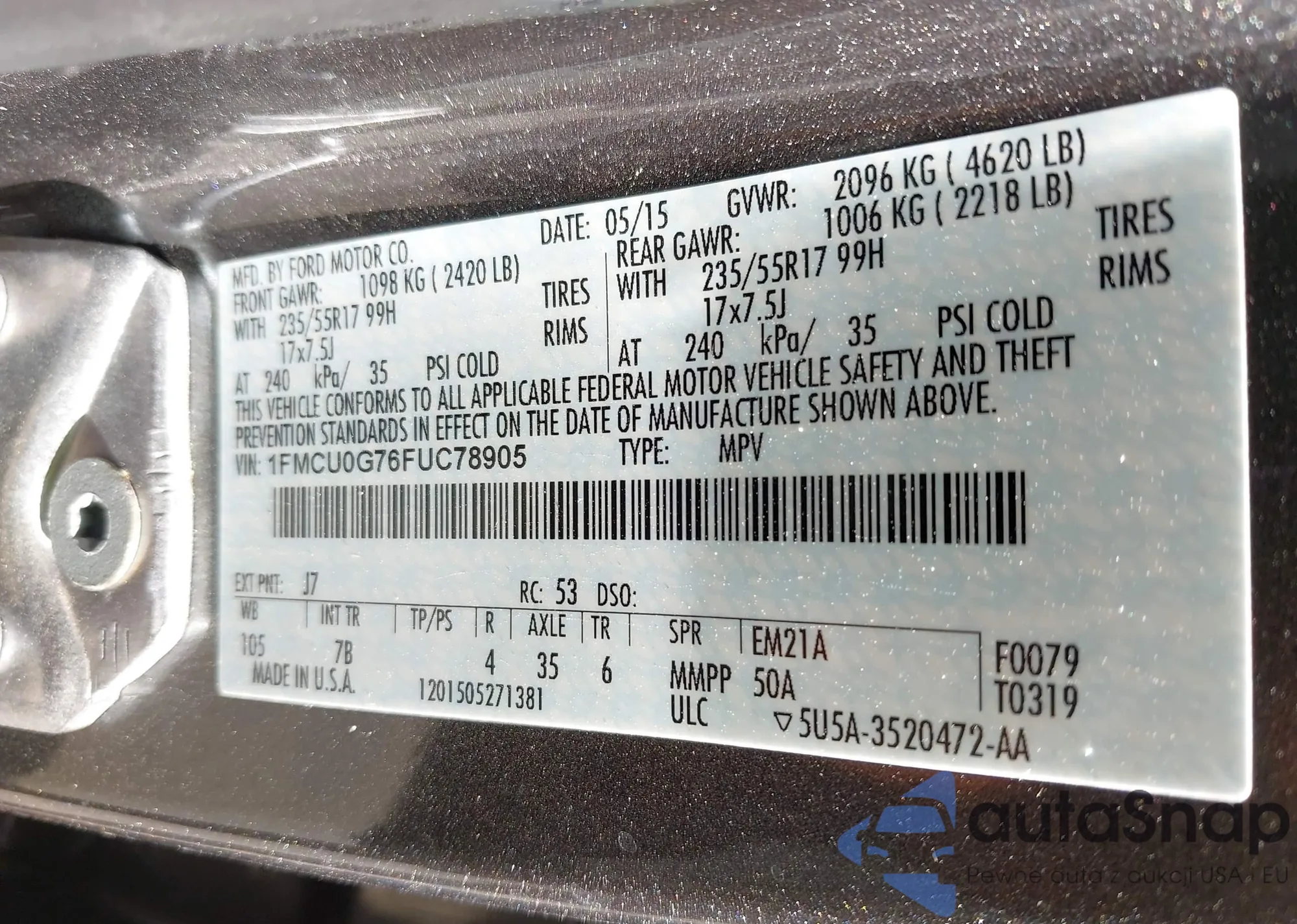 LOT: 43366694 VIN: 1G1PA5SH5F7156961