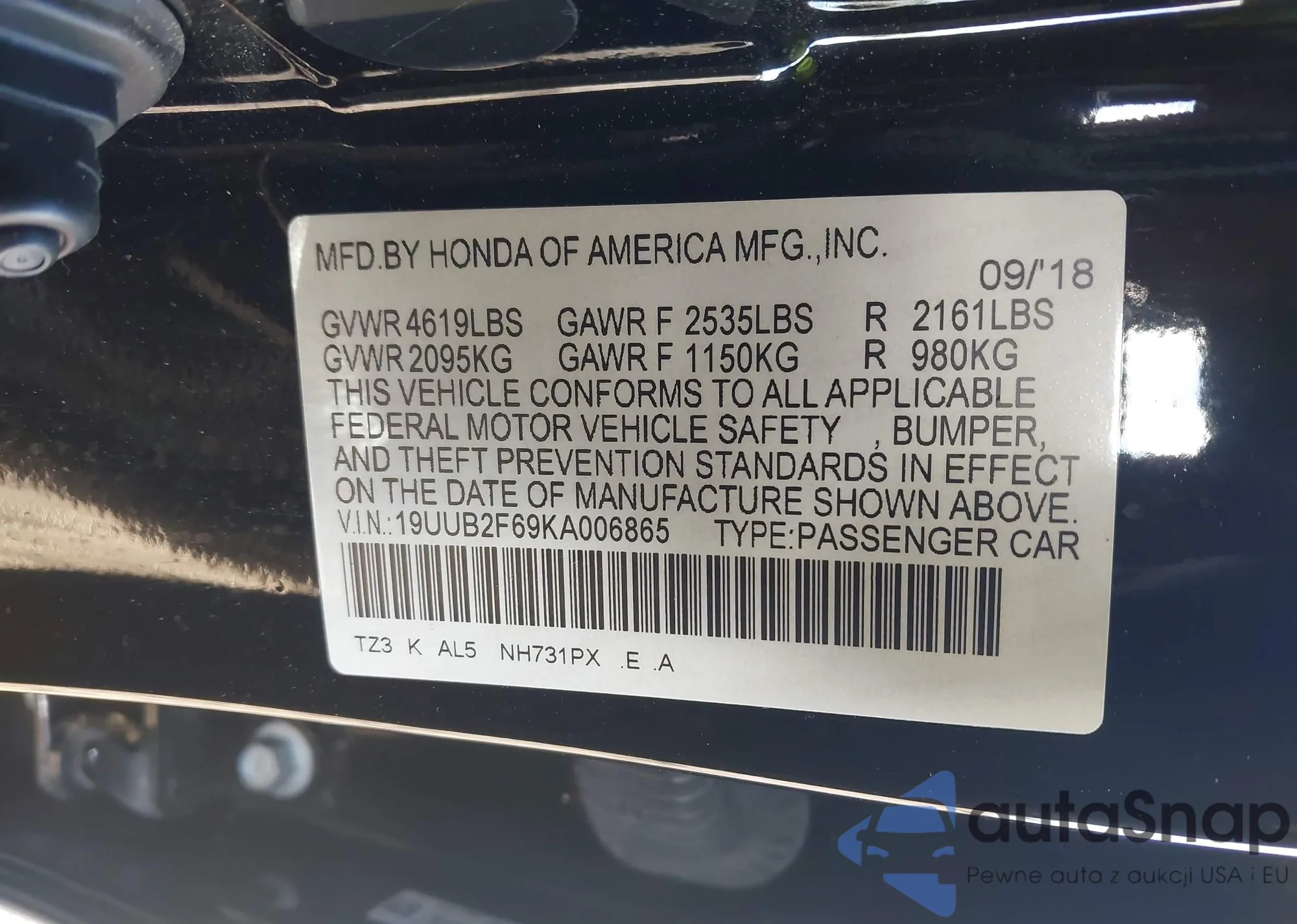 • VIN 19UUB2F69KA006865