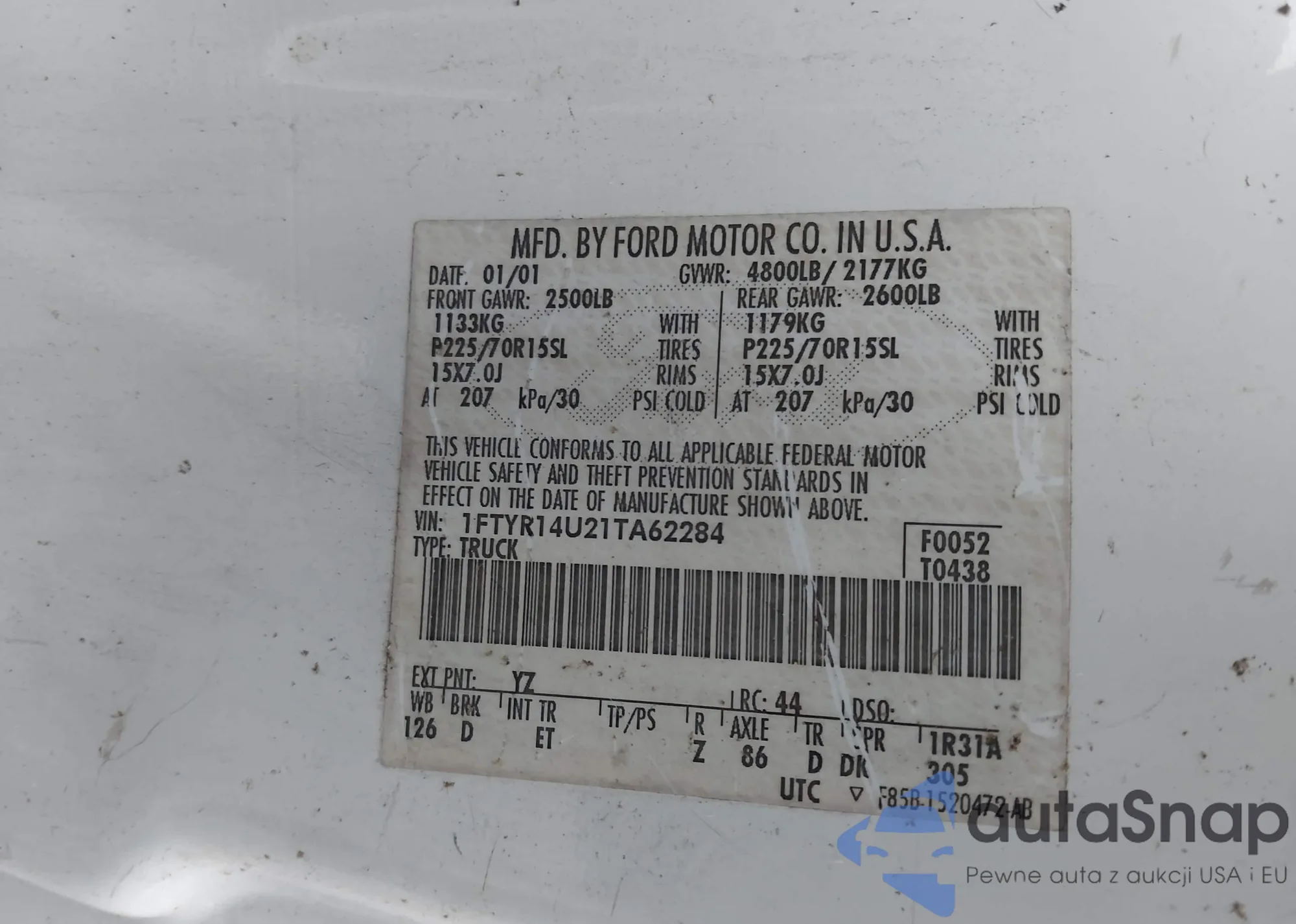 • VIN 4T1BF1FK1DU264649