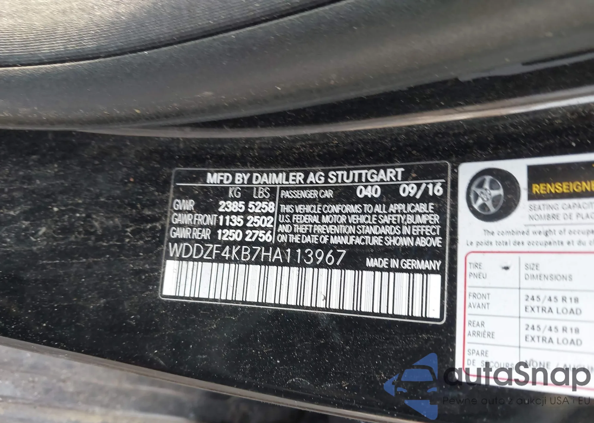 • VIN WDDZF4KB7HA113967